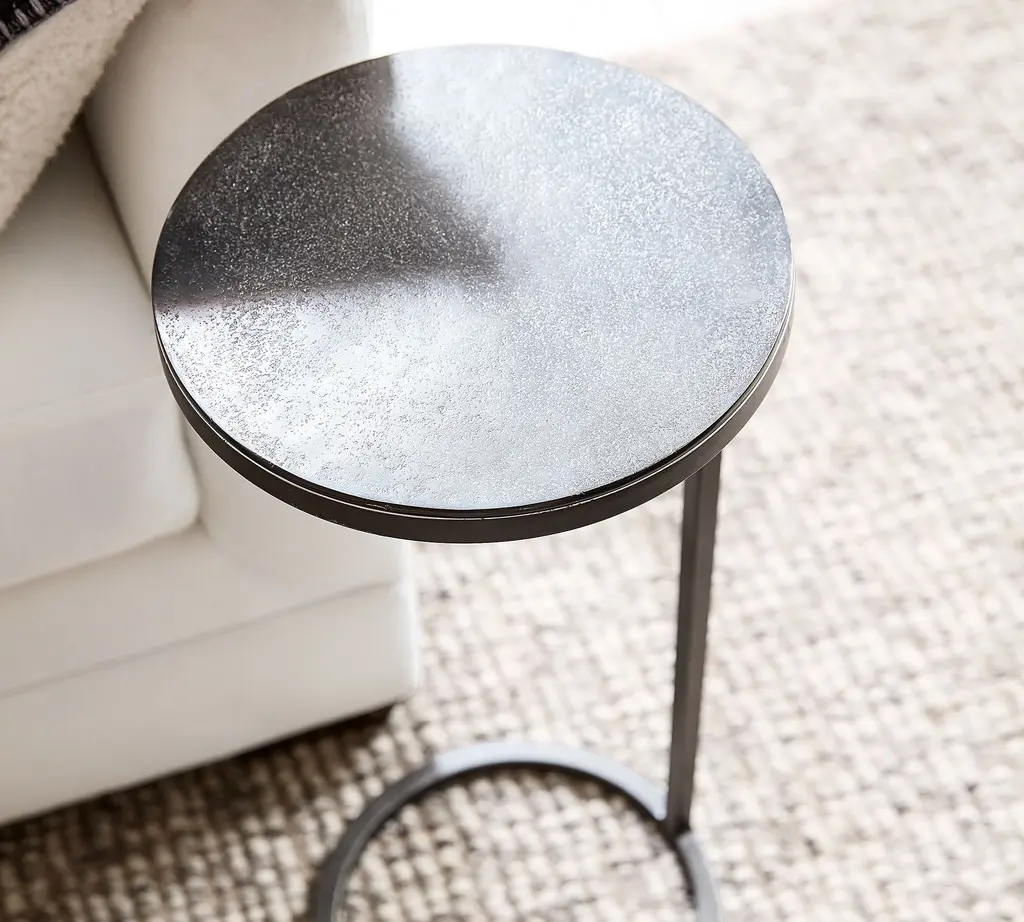With slender geometric profiles and polished finishes, our handcrafted Duke Collection charms its way into any room. This accent table has a clever design that adds a touch of elegance while saving precious floor space. Use it for your morning cup of coffee or happy-hour cocktail, or place it bedside for your nighttime essentials. Like a personal butler, it’s anywhere you need it.