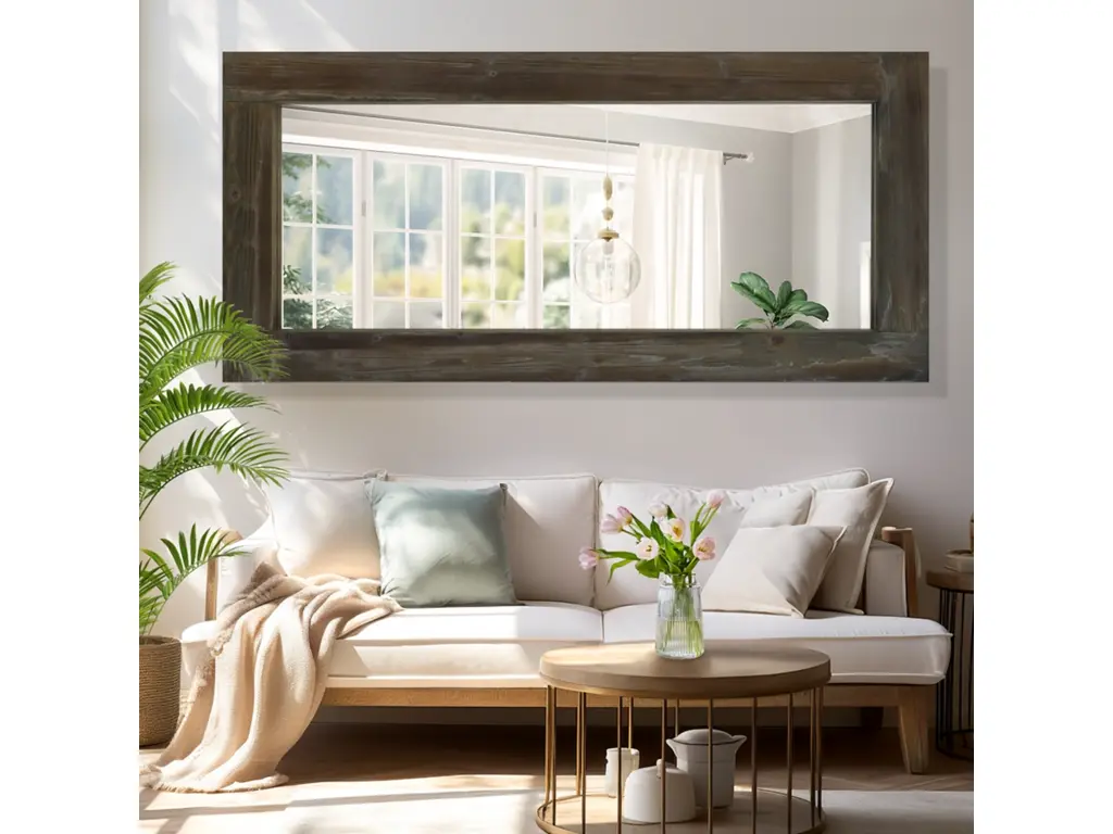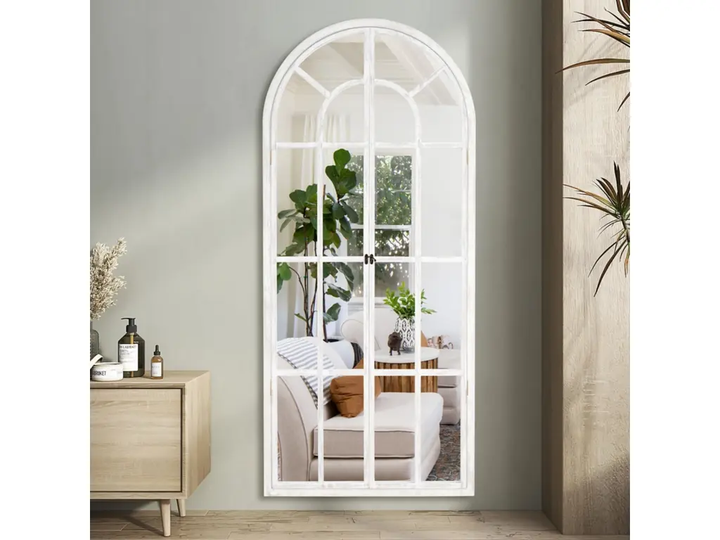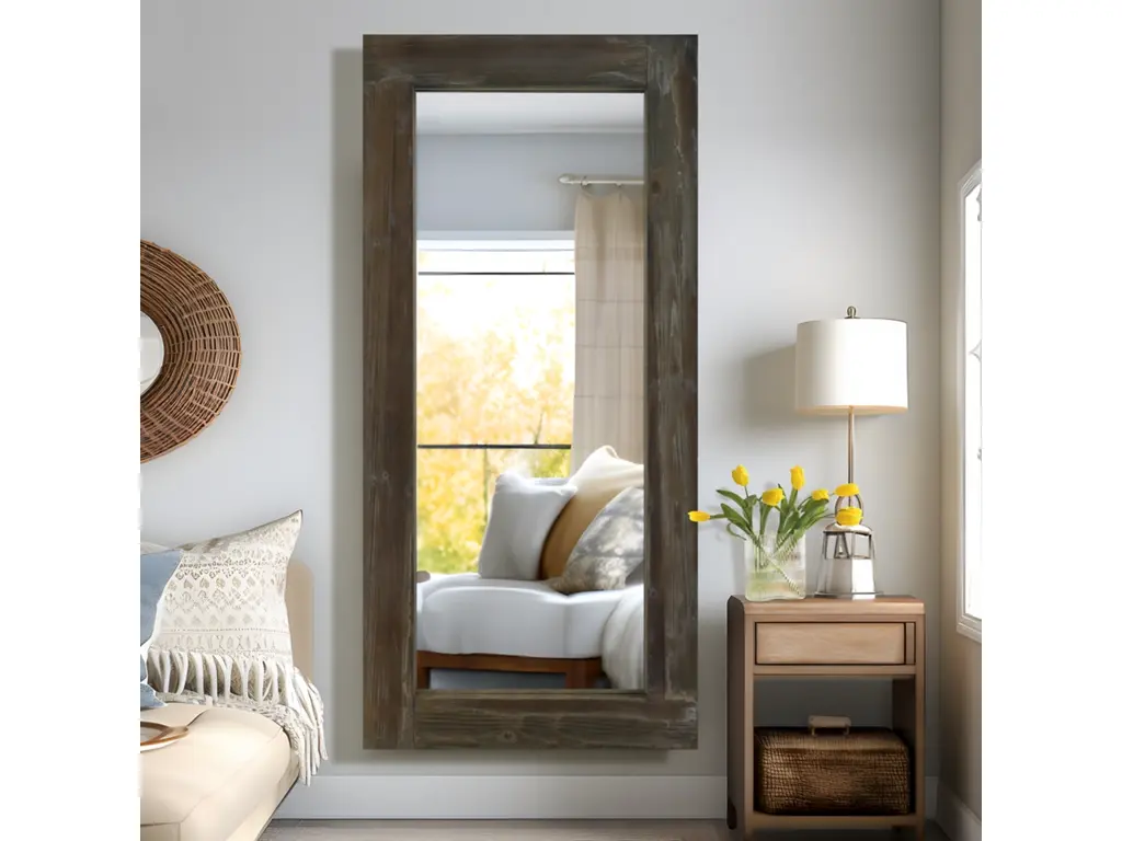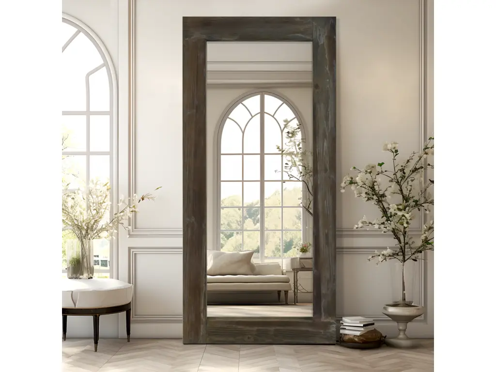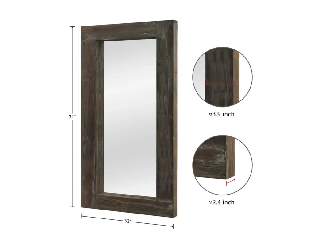 This vintage-inspired full-length mirror can effortlessly enhance the aesthetic of your home. With a distressed finish and an impressive silhouette, this mirror features a classic frame in a neutral hue, perfectly complementing various styles from traditional to modern. Its thickness and weightiness make it an ideal choice for leaning against an open wall in your bedroom, entryway, or hallway. Standing at 71 inches tall and 31 inches wide, this accent mirror is perfect for a last-minute reflection check before heading out, and its shatterproof glass ensures added safety.