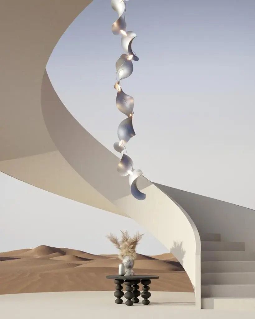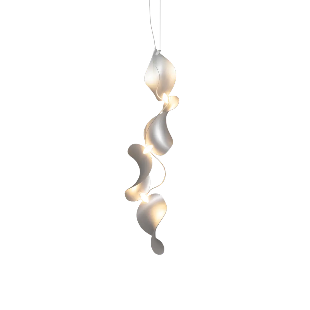 The wide, undulating curves of large sand dunes inspired us to create the modular Dune light fixture. Fascinated by the light and shadows cast by dunes that are constantly in motion, we designed organic shapes as floating objects in space. Dune can be composed of any number of shades, which are linked together using a smart connection system. The connectors are designed to be seamlessly integrated into the design while ensuring a warm, striking light distribution. Up to 250V (Europe/UK Standard).