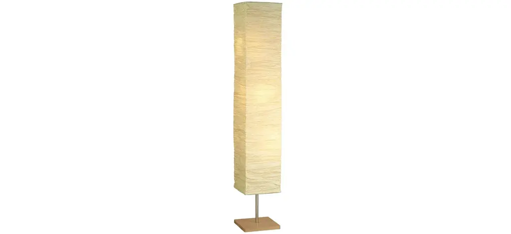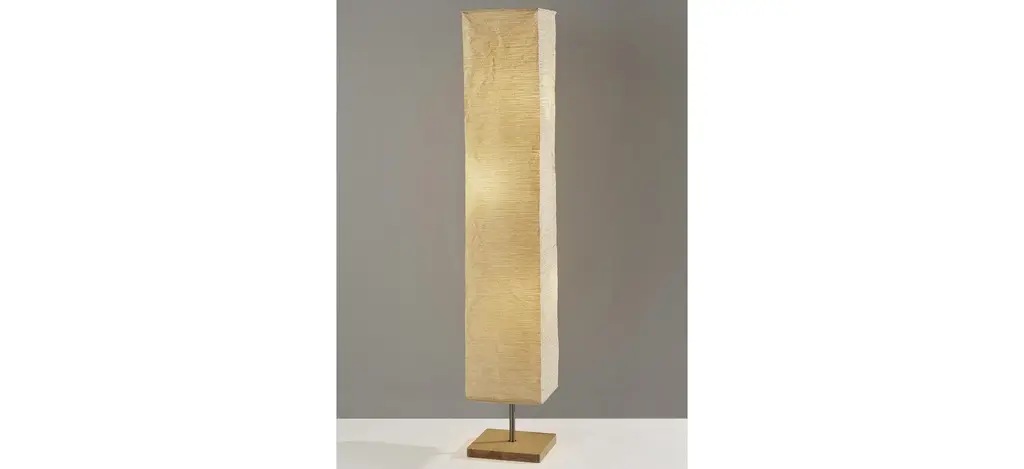 The Dune torchiere lamp adds an accent of nature as well as illumination to any room. The natural wood base with steel accents contrasts with the texture of the collapsible crinkle paper shade. The shade diffuses the light from the three stacked bulbs inside. This lamp has a cord and is smart outlet compatible. Bulbs are not included.