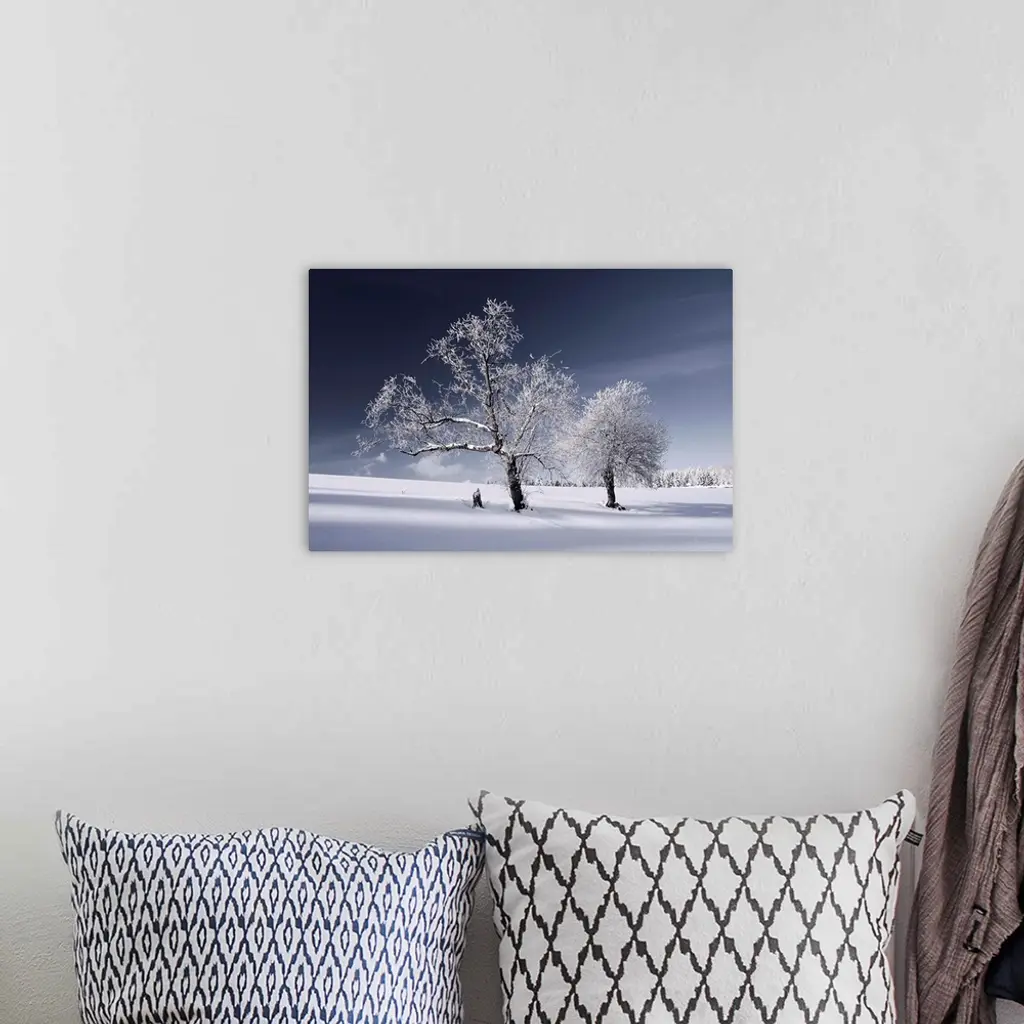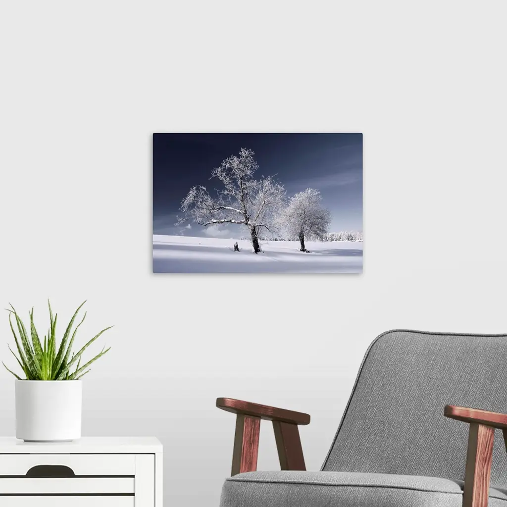 Trees covered in snow in a white landscape