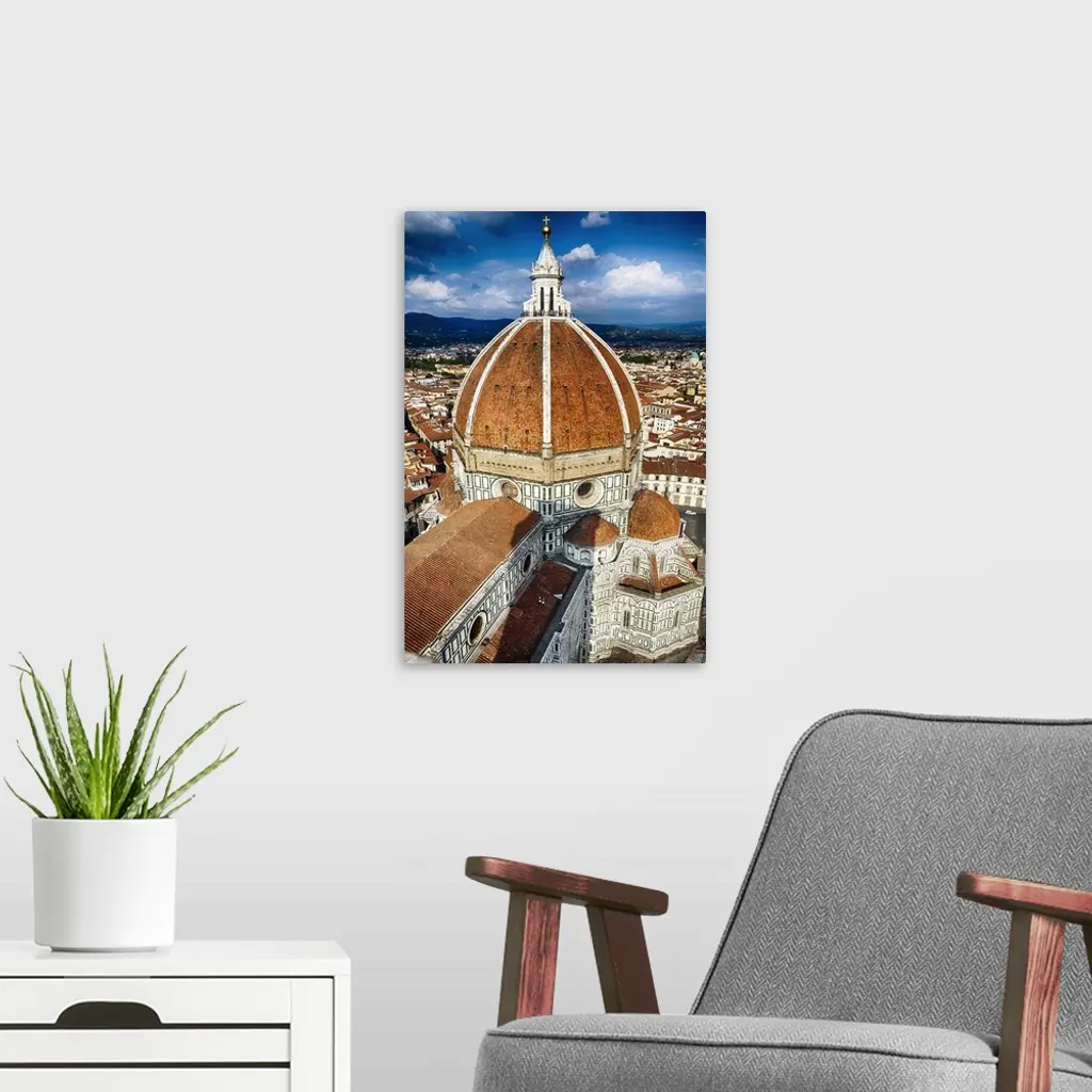 High angle view of the Florence with the Dome of the Basilica of Saint Mary of the Flower, Tuscany, Italy.