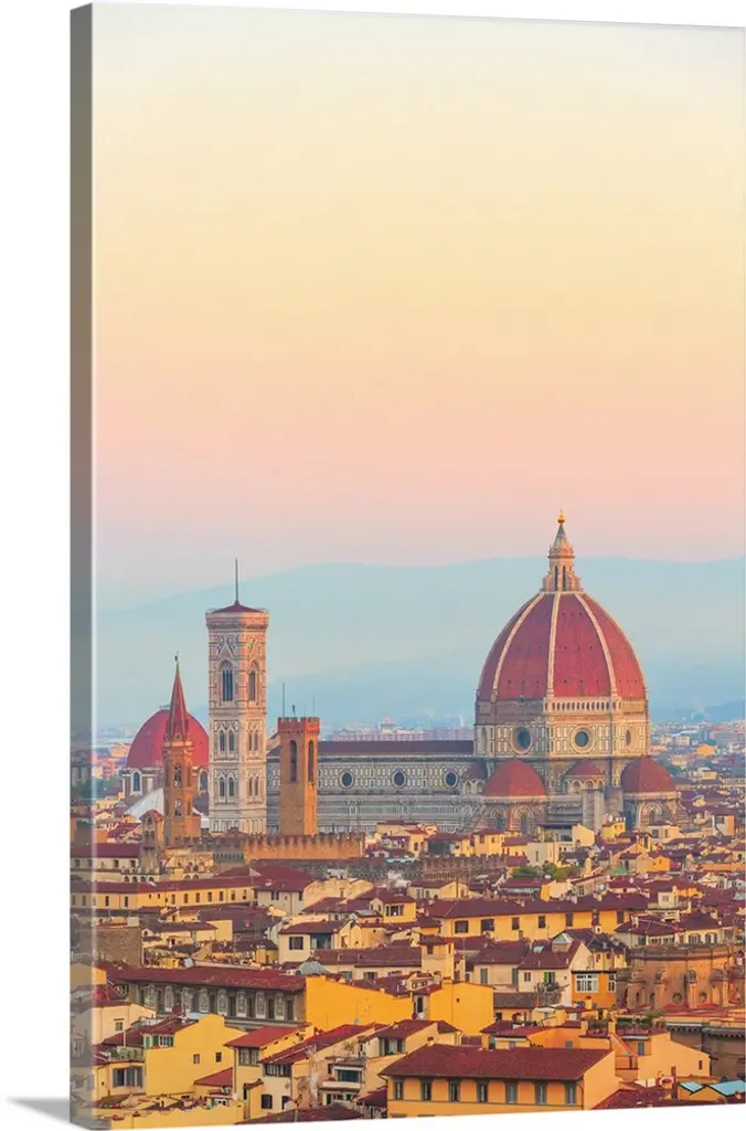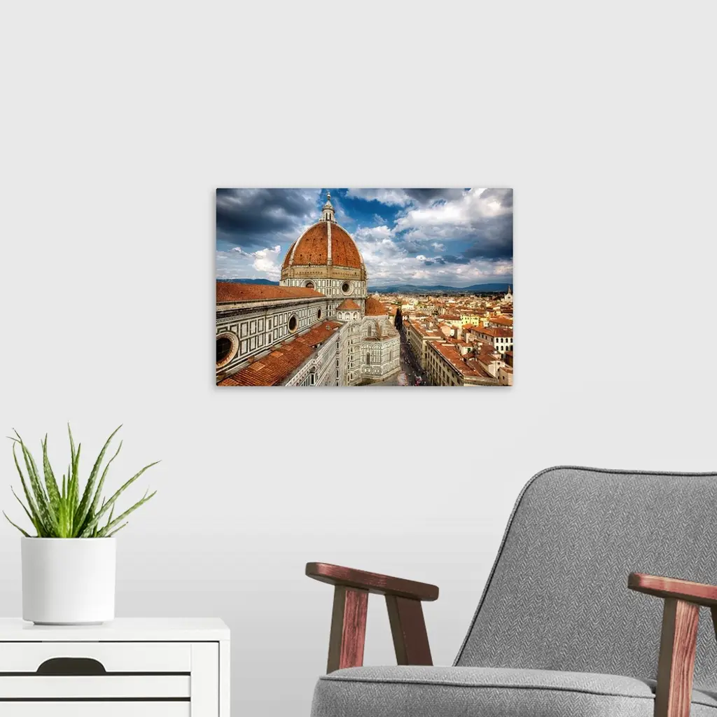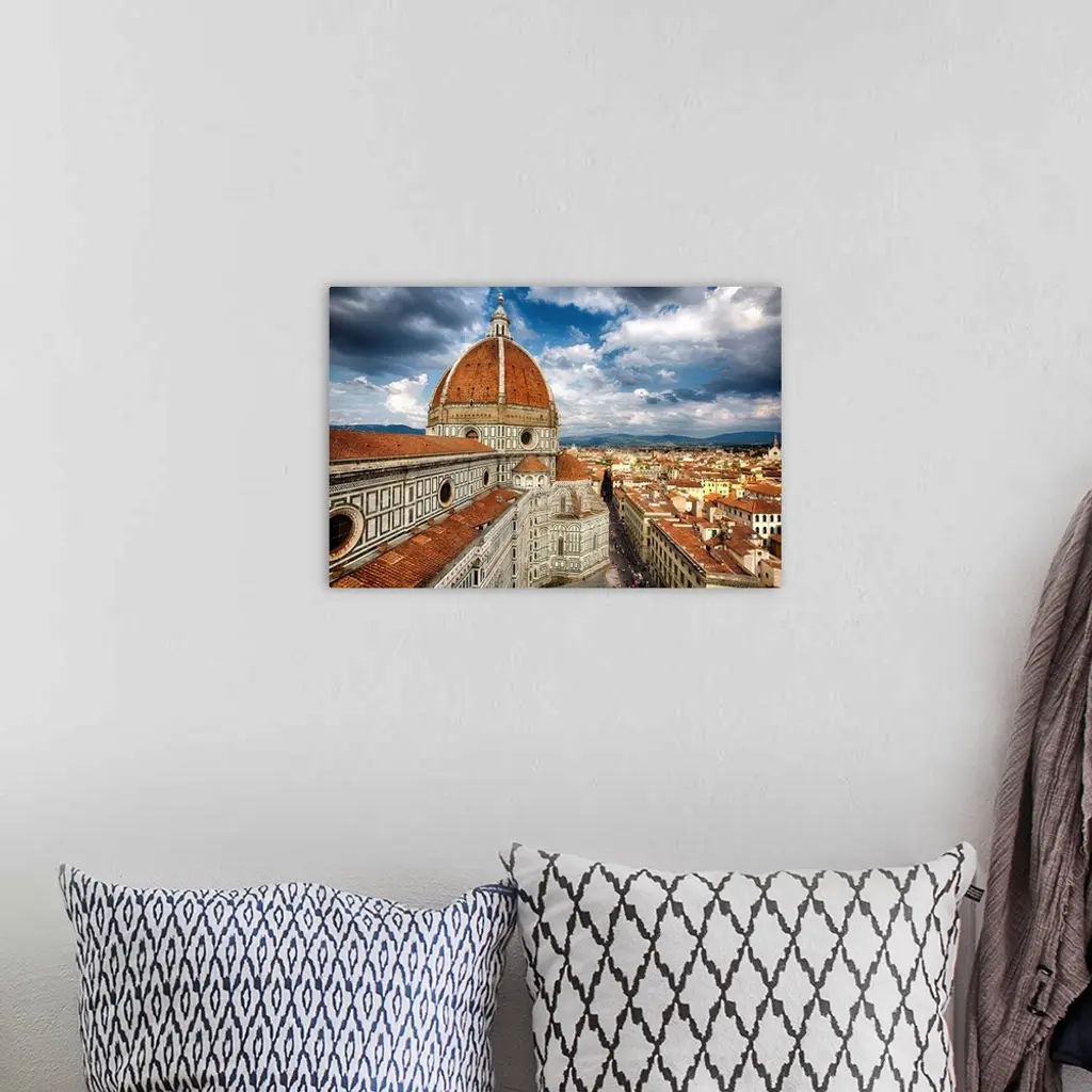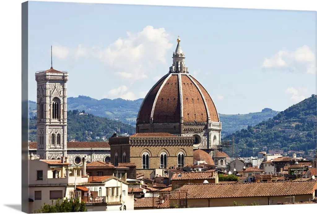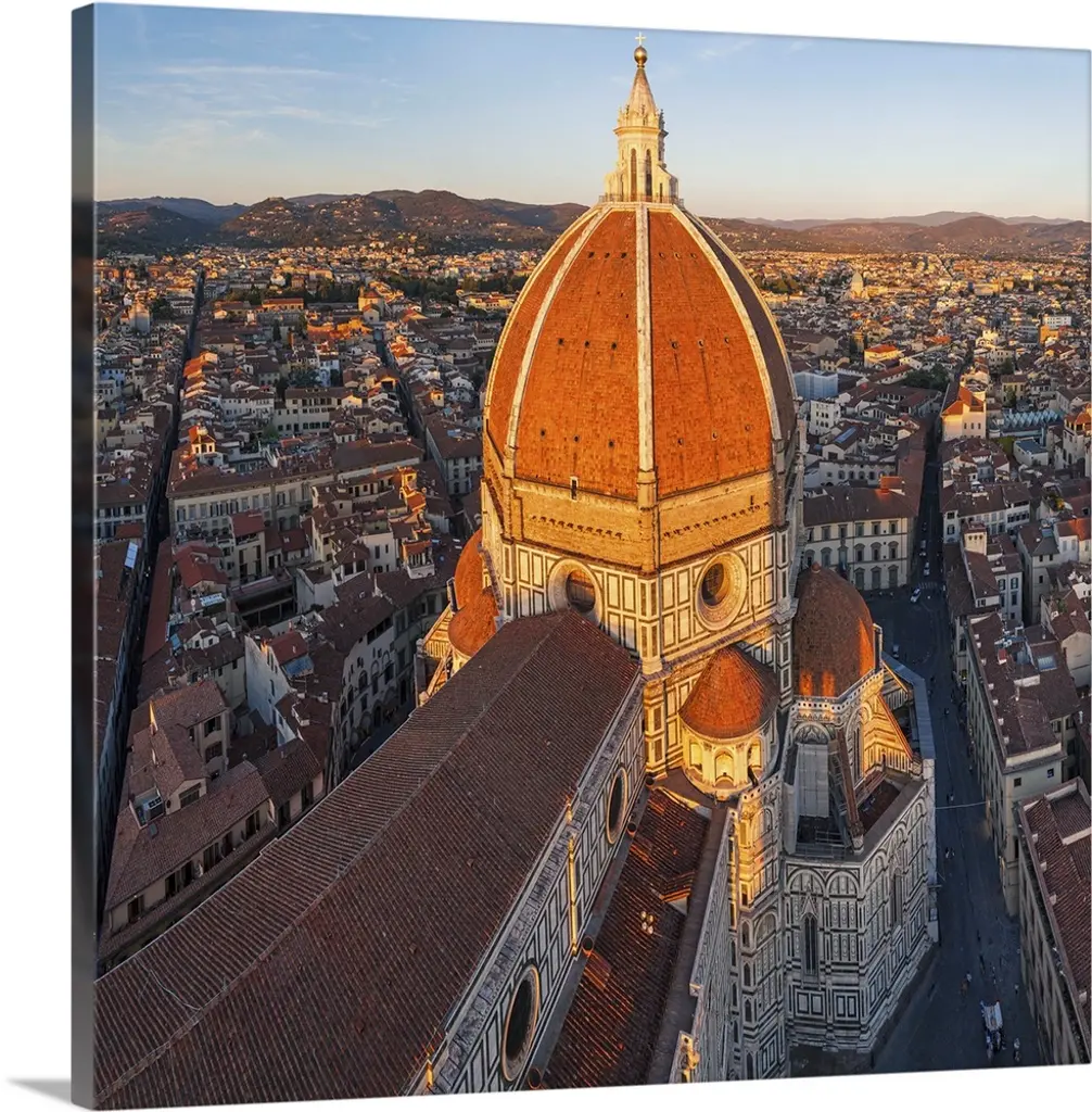 High angle view of the Florence with the Dome of the Basilica of Saint Mary of the flower, Tuscany, Italy.