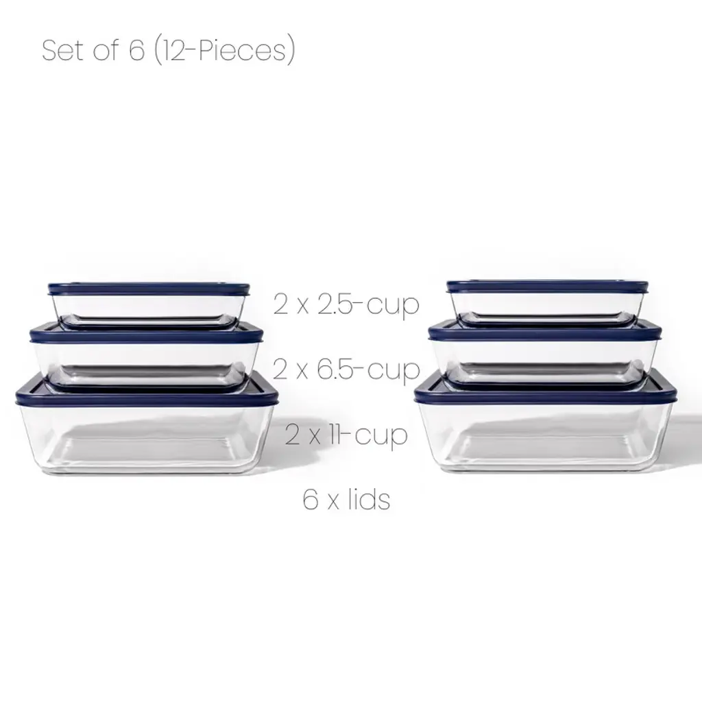 Dura Culina® 12pc Rectangular Glass Food Nesting Container Set - Blue
