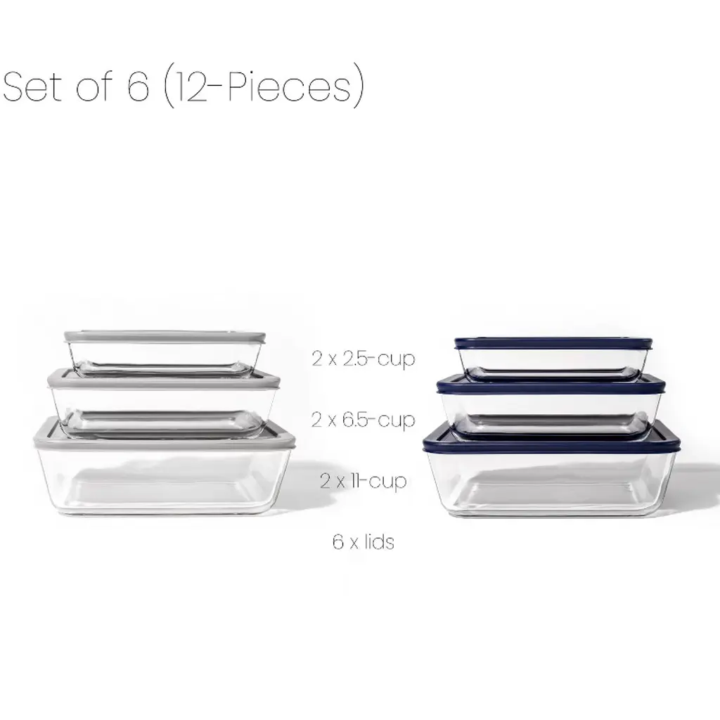 Dura Culina® 12pc Rectangular Glass Food Nesting Container Set - Grey + Blue