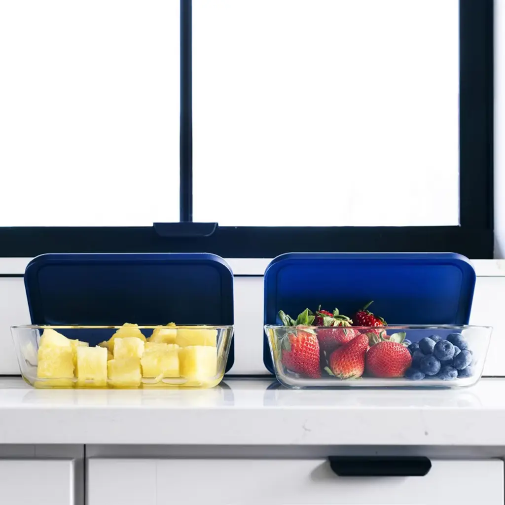 Dura Culina® 4Pc 6.5-cup Size Rectangular Stackable Glass Food Container Set, Blue