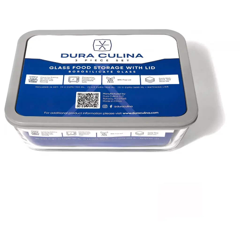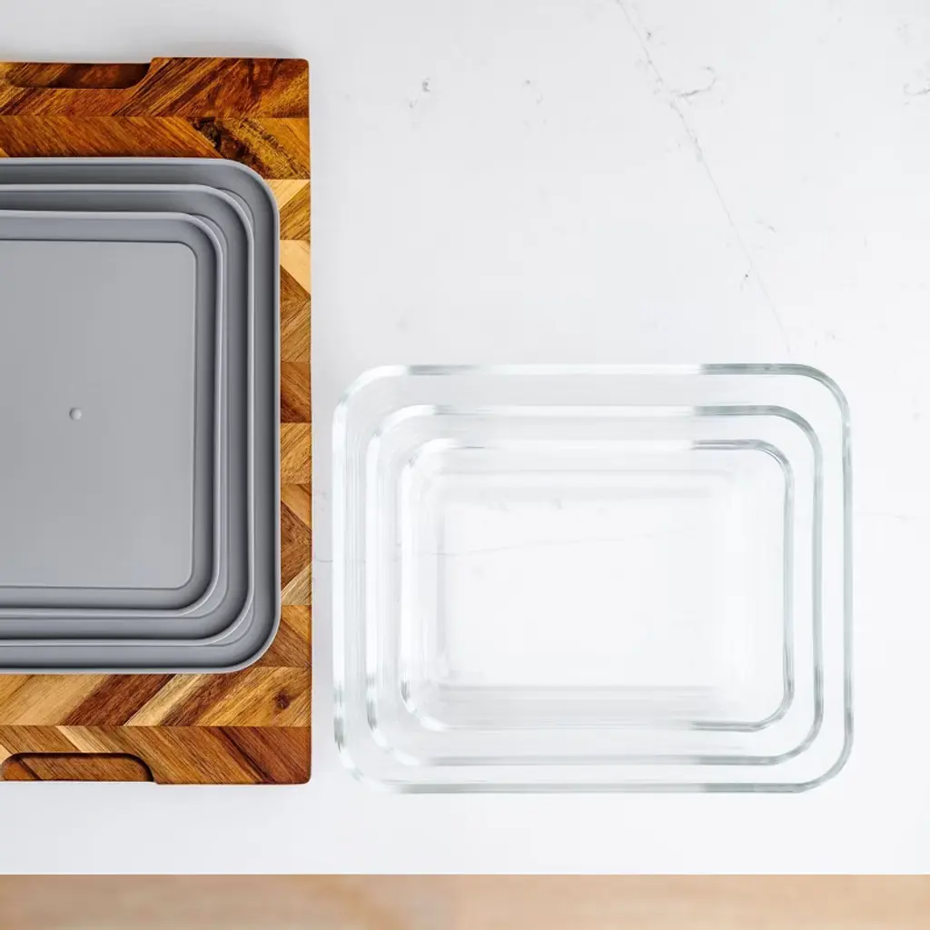 Dura Culina® 6Pc Rectangular Glass Food Nesting Container Set - Gray