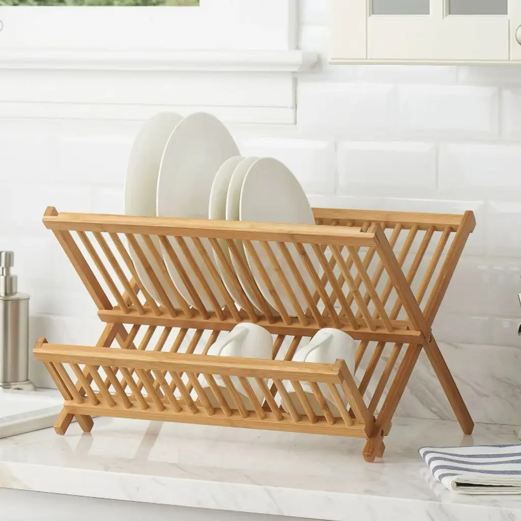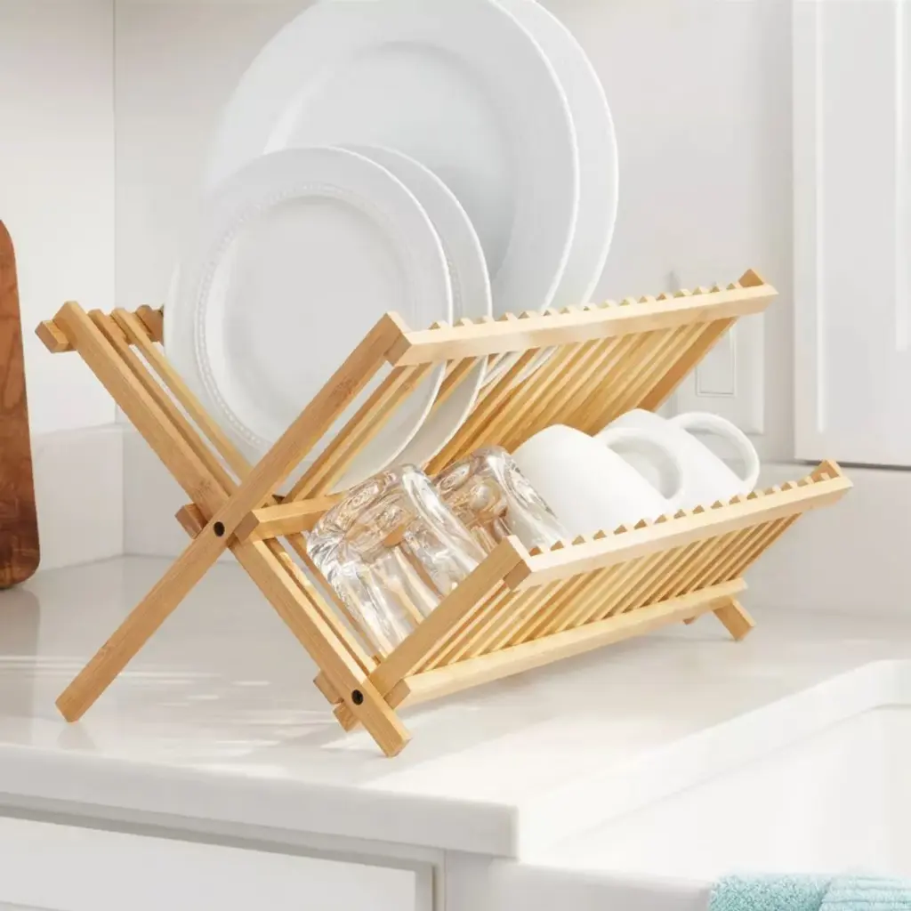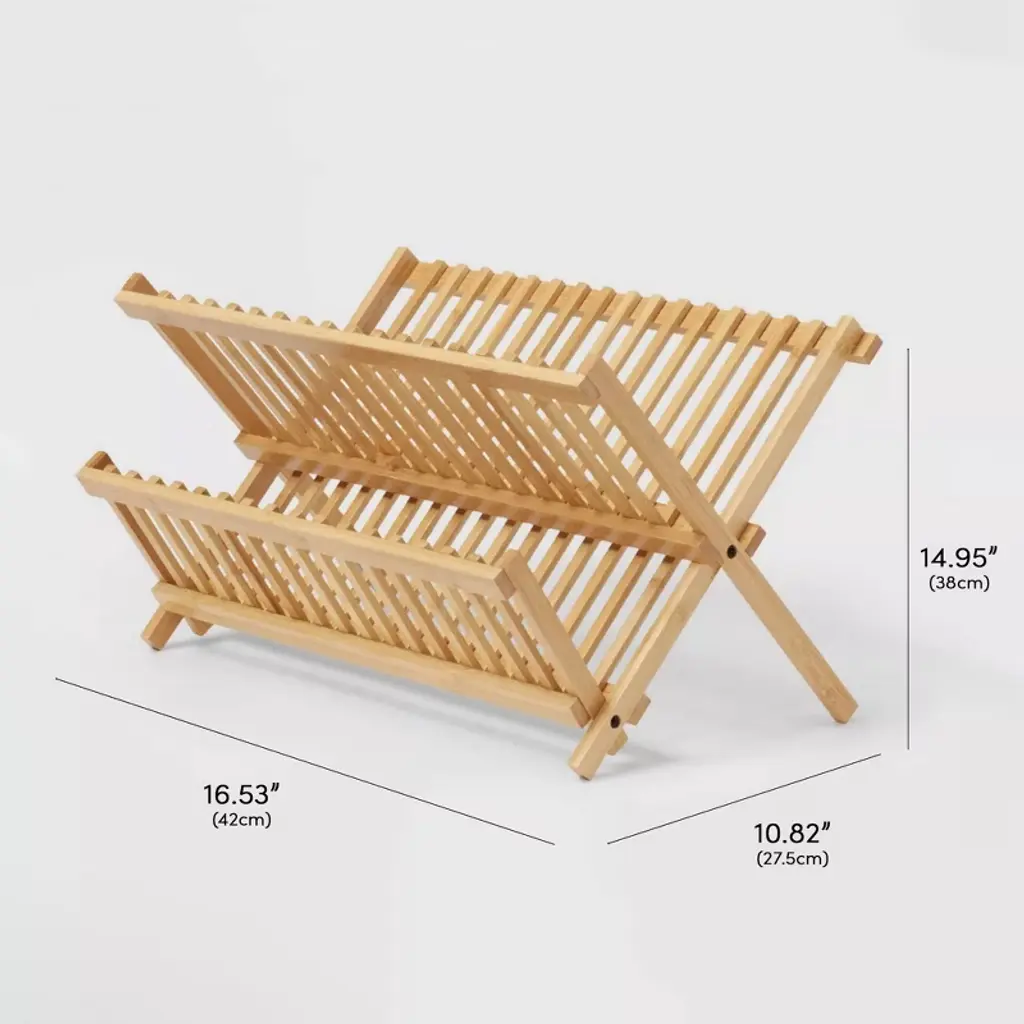 Let your dishes, bowls, and flatware air dry effortlessly with this Bamboo Drying Rack. Designed with a two-tier slatted construction, it promotes quick and efficient drying. Its freestanding design allows for easy placement on your countertop, while the foldable feature ensures convenient, space-saving storage when not in use.