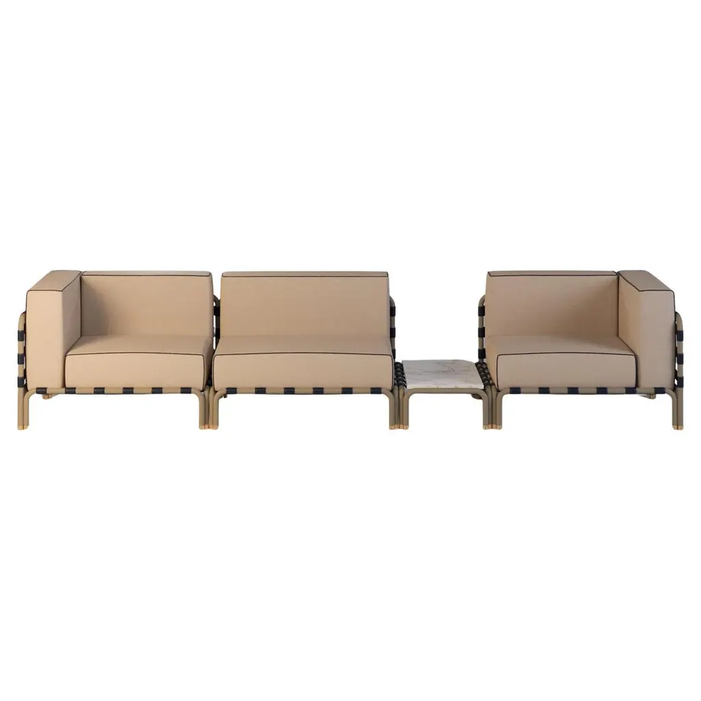 Hound Modular SofaThe Hound modular sofa is a perfect combination of classic elegance and modern durability, designed to elevate any outdoor setting. With its modular design, the Hound sofa effortlessly adapts to any space, offering both versatility and refined comfort.Composed of different modules, the sofa adapts to all the needs of the space, whether on a terrace, in the garden or by the pool, creating an atmosphere of elegance and versatility.All Myface materials are from premium suppliers, engineered to offer the best performance possible outdoors.Water, Mold, Mildew, UV, and Fading resistance are some of the characteristics that you can expect from both materials, which are available in a wide array of colors and patterns.