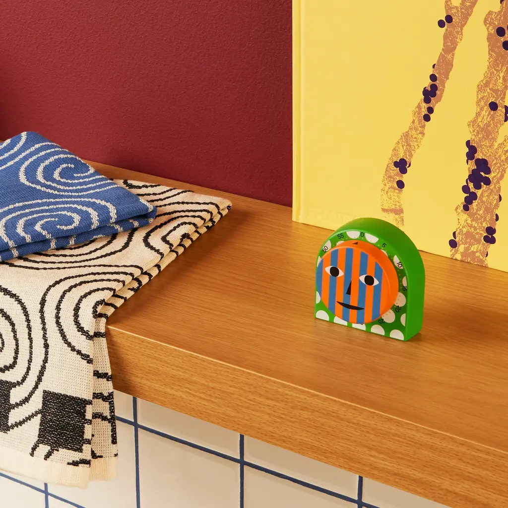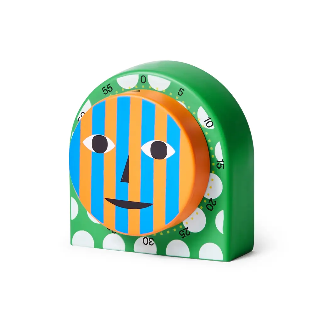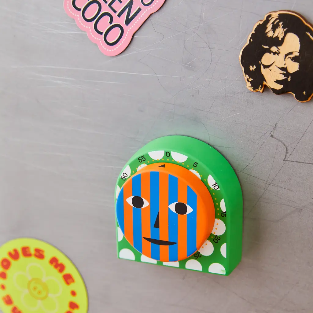 Featuring design Ellen Van Dusen’s uplifting Smiling Sun motif, this retro-inspired Everybody Kitchen Timer times your baking and cooking with a classic rotating function, designed in collaboration with Areaware. Set the timer by rotating to the time you need, up to 55 minutes, and wait for the bell. It has a magnetic back so you can attach it to any metal surface in your kitchen. The Dusen Dusen Everybody Kitchen Timer is made of metal and measures 2.9h x 2.9w x 1.3"d.