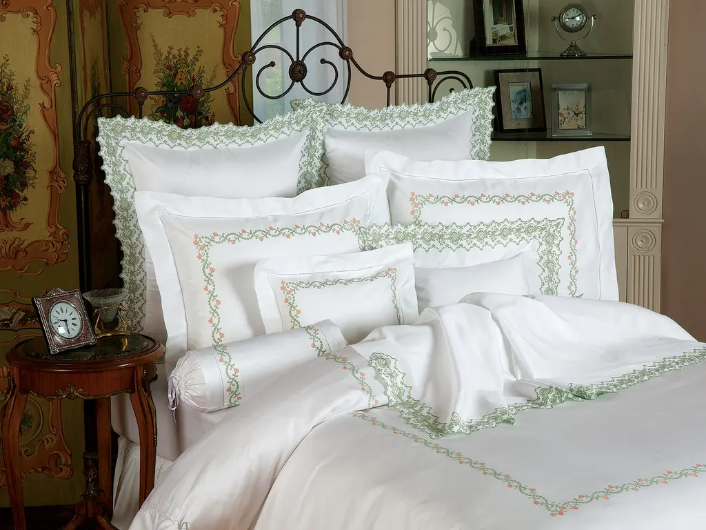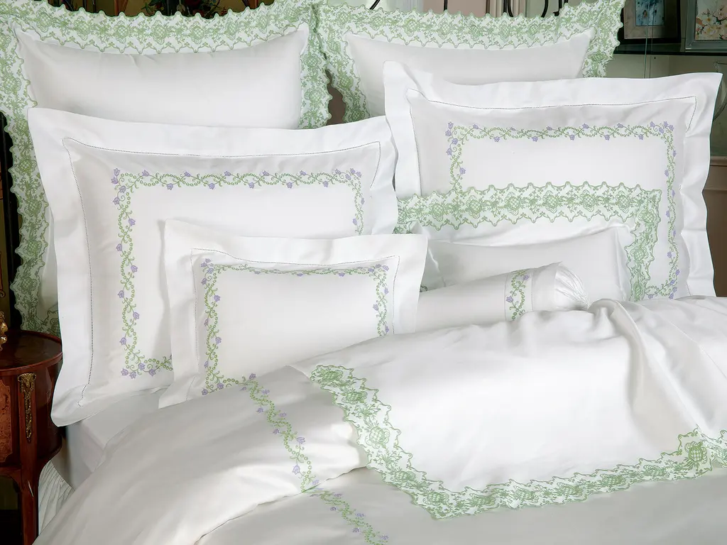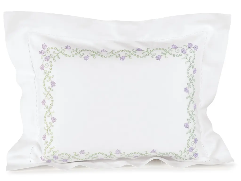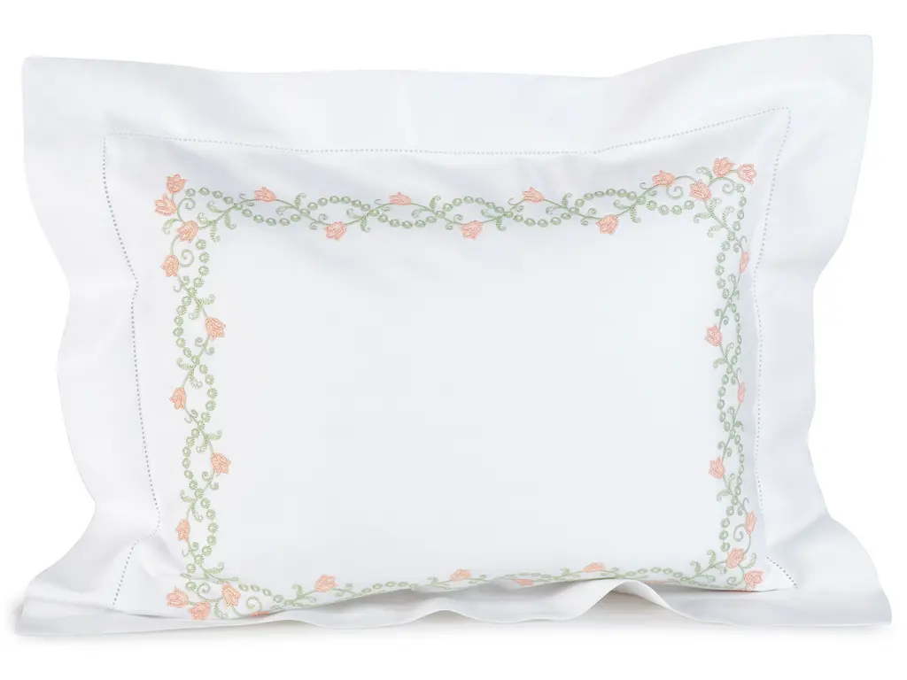 Darling tulips, the endearing flower of the Dutch Golden Age, bring embroidered elegance to the glossy softness of 600 thread count 100% Egyptian cotton sateen. Made in Italy with utmost care, you will find yourself enchanted at first sight and first touch. Available in Peach or Lavender with subtle hemstitching, flanged edges and mitered corners.