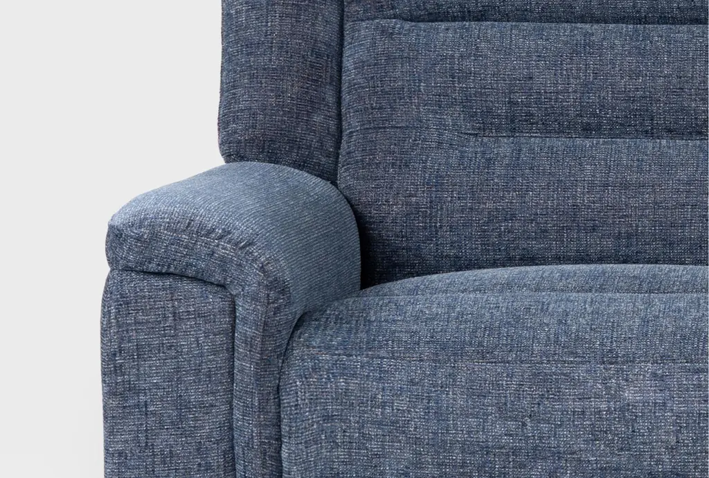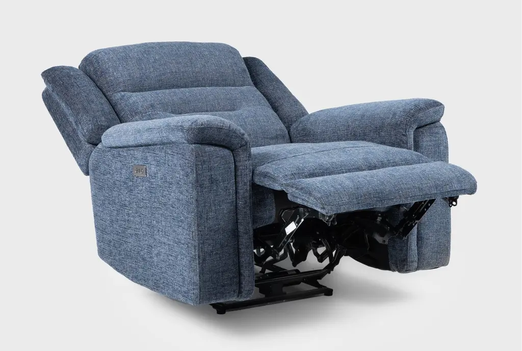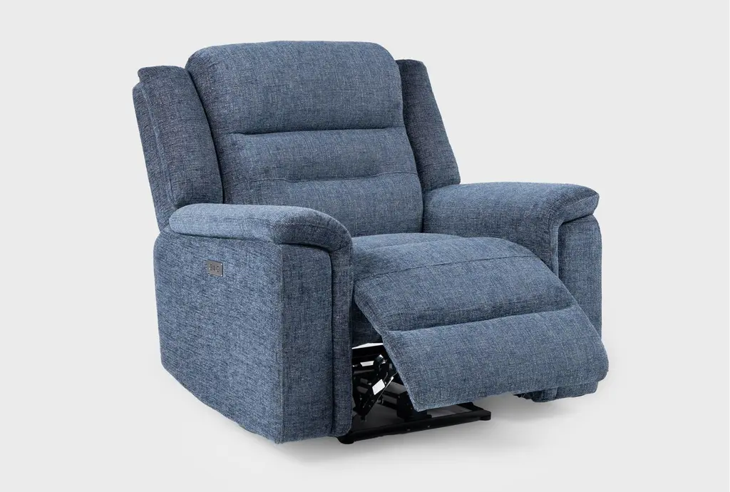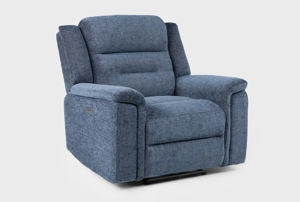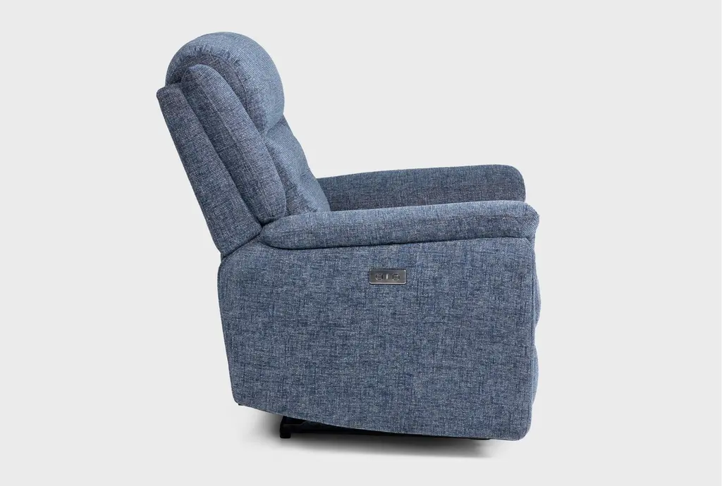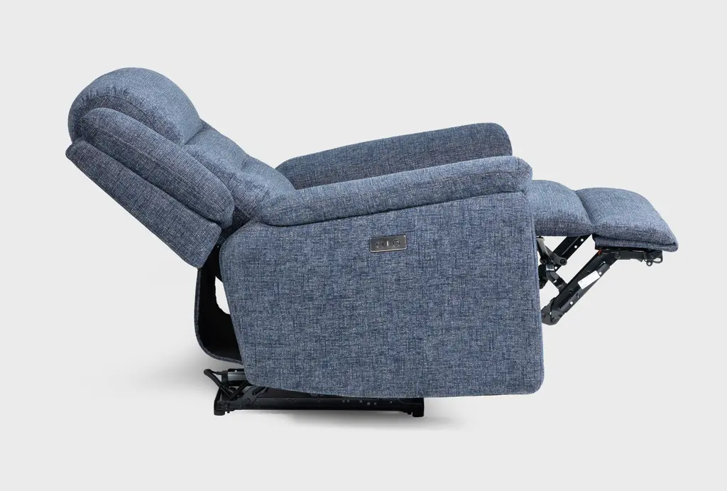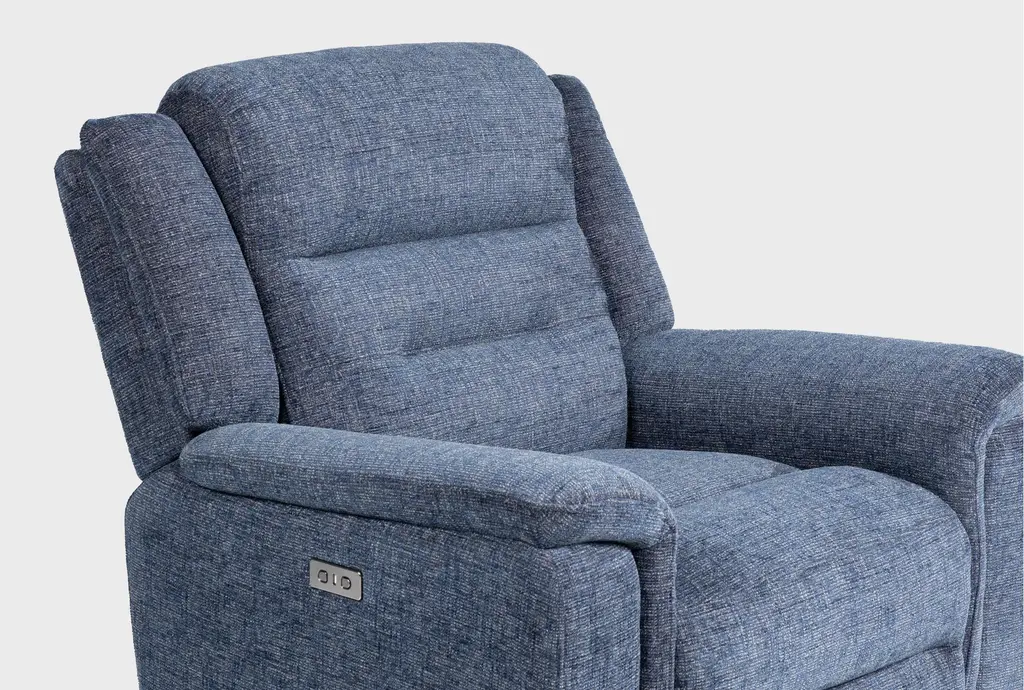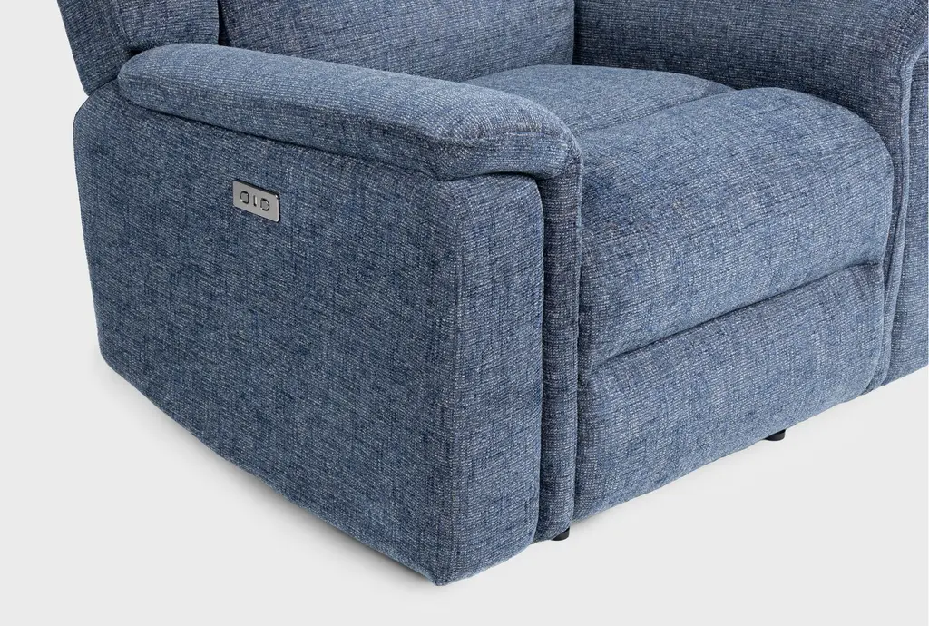 Experience ultimate relaxation with the Dutton Blue Fabric 41" Power Recliner. Perfect for your living room, this casual recliner boasts a comfortable and inviting design. The power recline function allows you to easily adjust to the perfect position for reading, watching TV, or taking a nap.