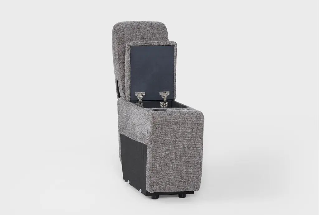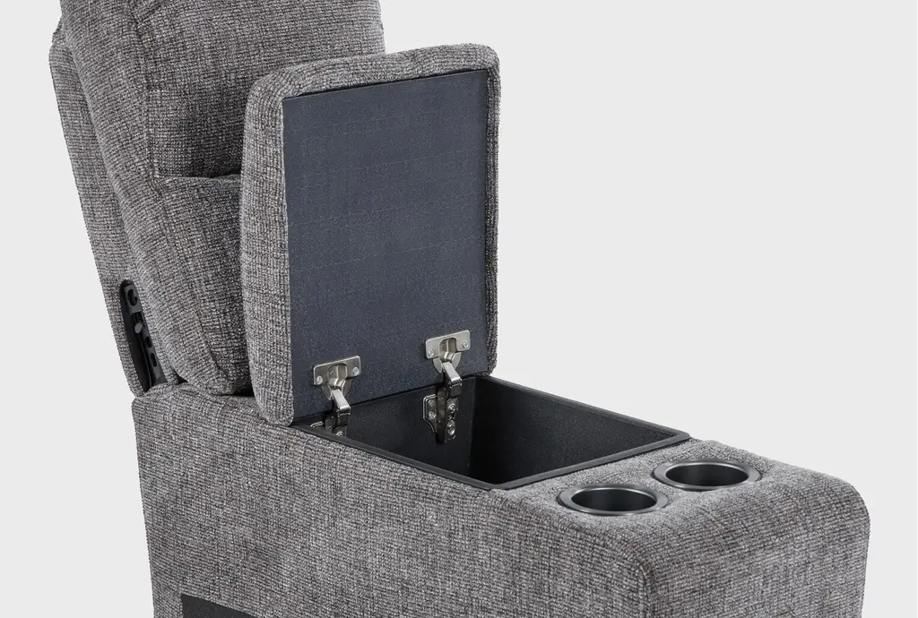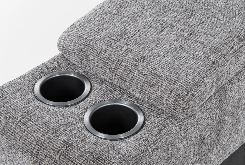 Experience convenience with our Dutton storage console, which is made to enhance your lounging experience. In addition to a storage compartment, it includes cupholders. Multiple color options allow you to choose the perfect hue.