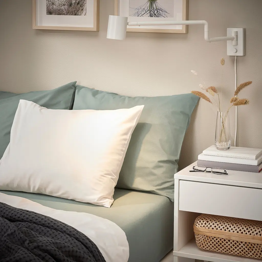 DVALA Fitted sheet - gray-green Queen. Made of 100% cotton - a natural and durable material that becomes softer with every wash. Cotton is a soft, natural material that breathes, absorbs moisture and feels comfortable against your skin. 152 thread count.