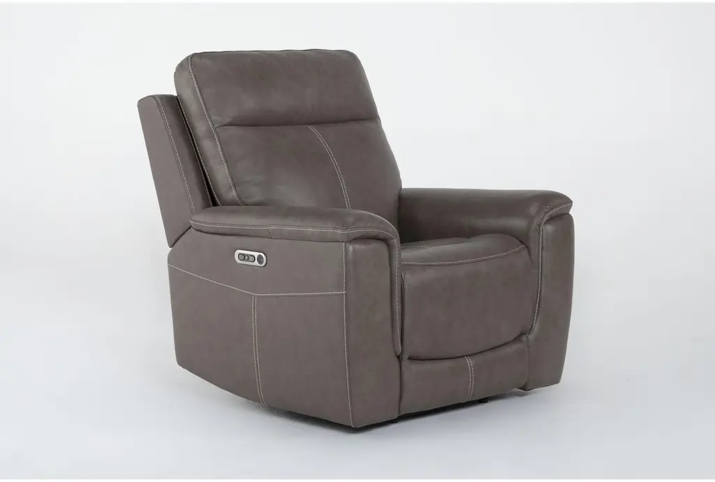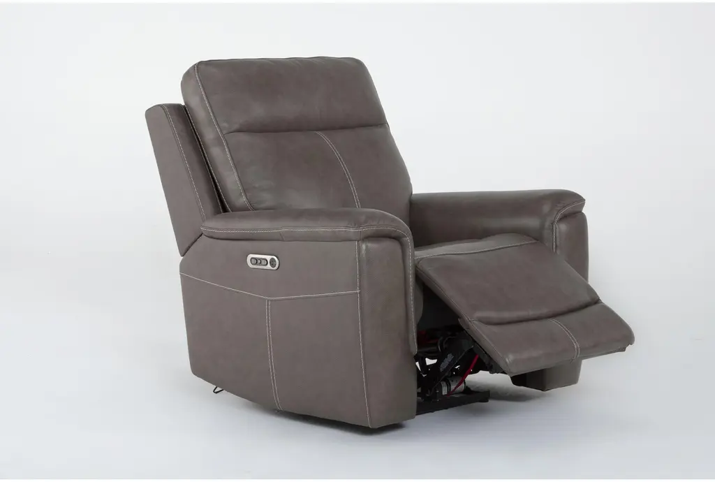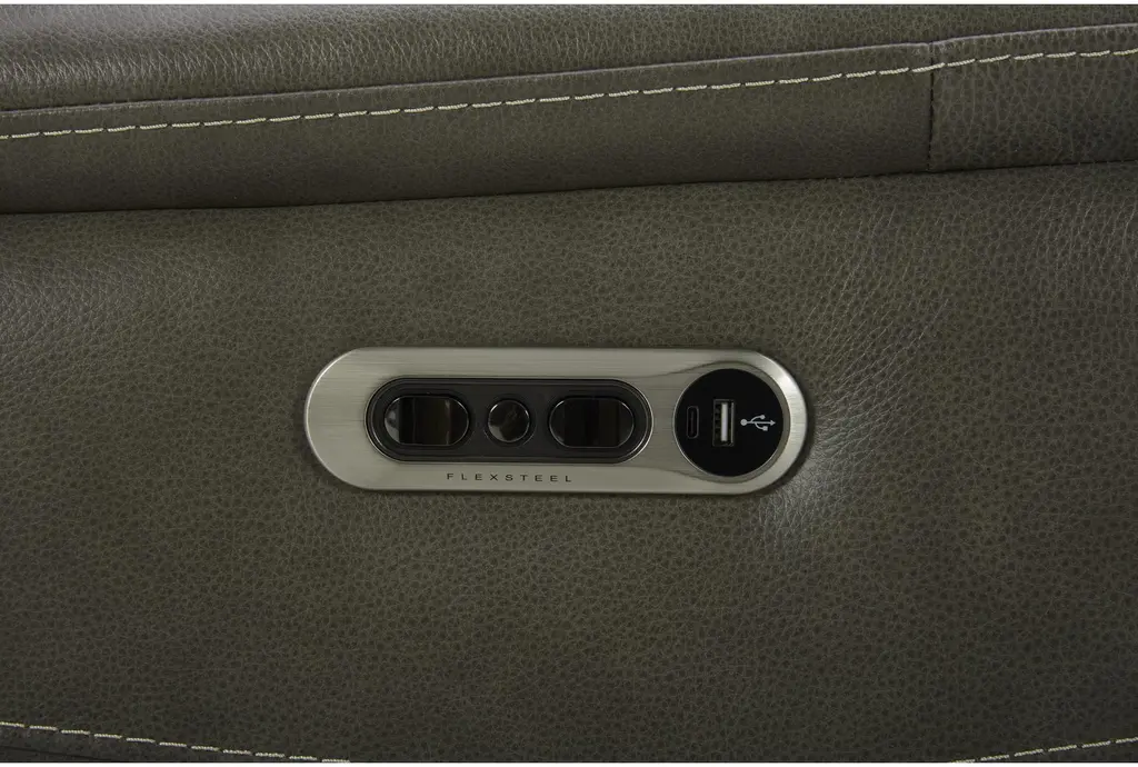 Dylan Dark Taupe Leather Flexsteel Power Zero Gravity Recliner With Power Headrest & Usb | Lumbar | Flat | Smart | Lay-Flat Reclining