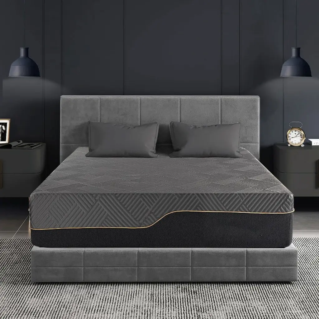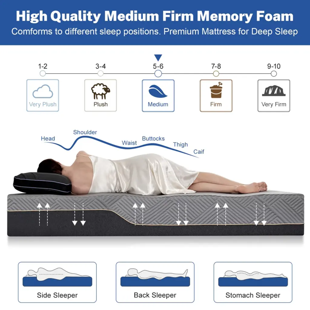 Dyonery 12" Memory Foam Premium Cooling Green Tea/gel Mattress With Ice Silk Cover,medium Firm Mattress For Back Pain, Bed Mattress In A Box, Black