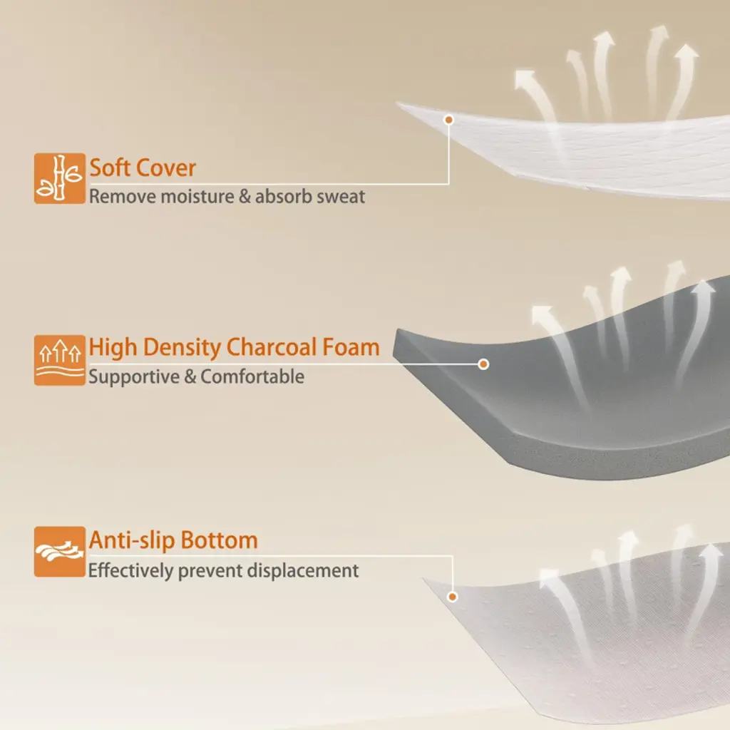 This bed topper is specially designed as an extra firm level. It's highly suitable for people who suffer from back pain/waist pain caused by insufficient spinal support. If you are looking for an extra firm bed topper that perfectly balances comfort and support, this would be the right one for you! The 3 inch foam mattress topper is made of bamboo charcoal infused foam, which is supportive, does not deform, and gives you the "just right" firm. Bamboo charcoal foam efficiently maintains a fresh environment, with no smell, and makes you sleep more comfortably. The foam mattress topper with a breathable and removable cover, is skin-friendly and soft to the touch, allowing you to enjoy a refreshing night's sleep. Non-slip beads and adjustable elastic straps on the cover back ensure a secure fit. Zipper closure for convenient disassembly and washing.