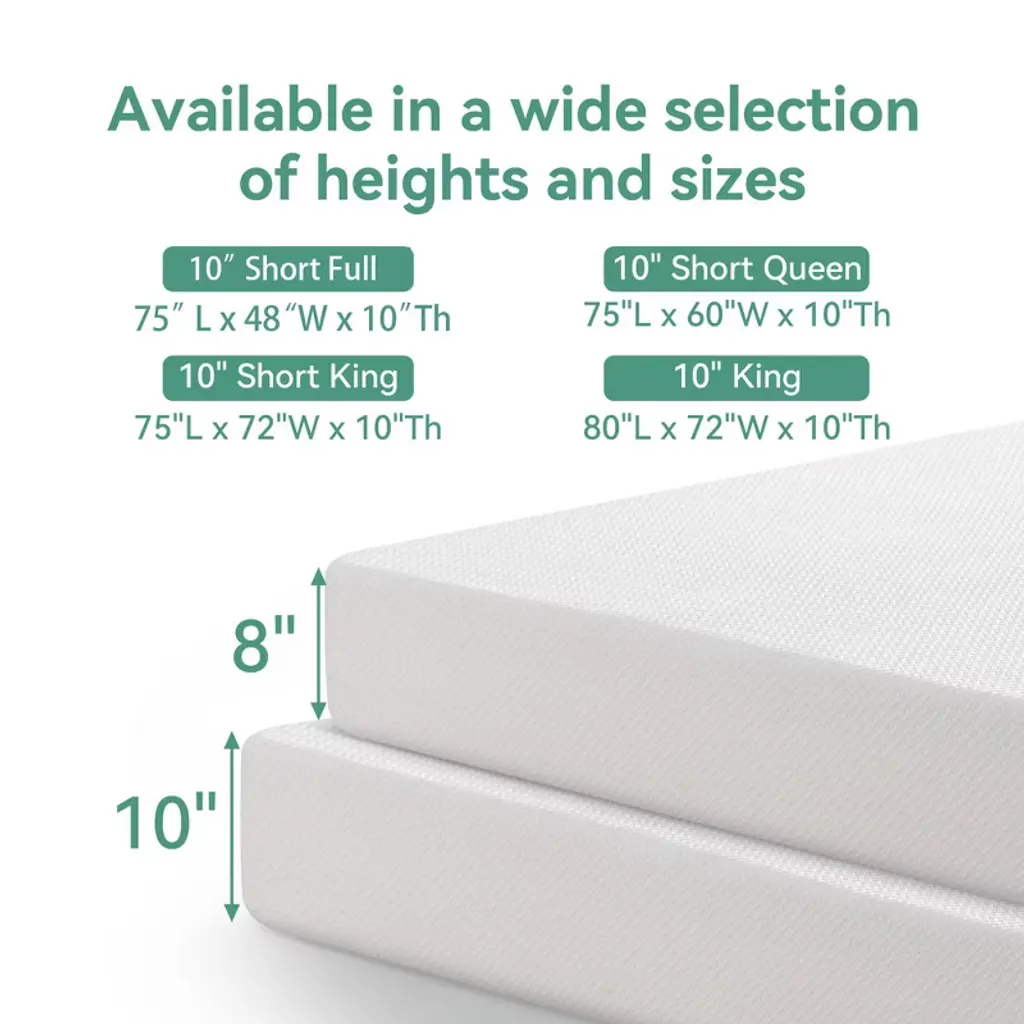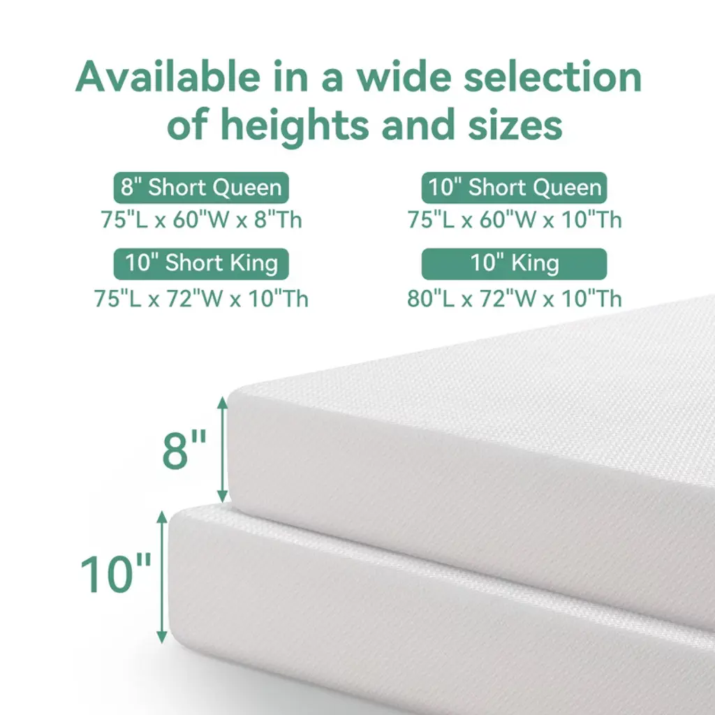 Dyonery Rv Mattress Short Queen 8" Memory Foam Mattresses,premium Cooling Green Tea/gel Medium Firm Bed-mattress, For Camper/trailer/truck,75'' X 72''
