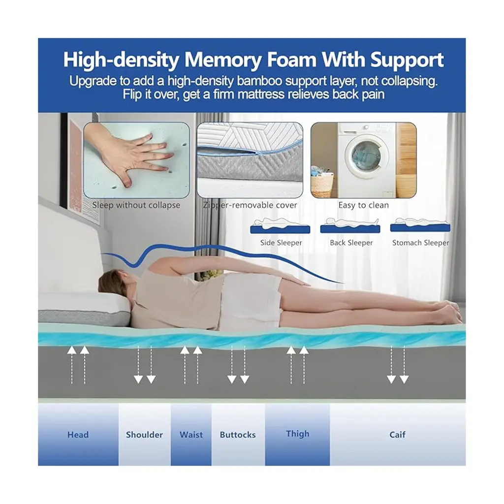 High-quality memory foam mattress: This mattress is designed in a box and comes with an ice thread cover. It contains no glass fiber and features an upgraded 4-layer cooling gel, green tea and bamboo fiber memory foam. It has a double-layer side cover and offers two options: hard and super hard, effectively relieving back pain. It is a perfect choice to give as a gift to relatives and friends. Double-sided sleep: Our upgraded hard mattress is more breathable and less likely to sag than traditional mattresses. Replacing the foam surface can meet your hardness requirements. If you are looking for a hard mattress that is both comfortable and supportive, then this mattress is your ideal choice. Upgraded Tencel without fiberglass coverage: Our Green Tea gel mattress is covered with luxurious ice silk, cool and smooth, allowing you to enjoy deep sleep even in summer. The other side is made of fashionable grey fabric, which is soft and skin-friendly. The mattress cover can be changed according to one's mood.