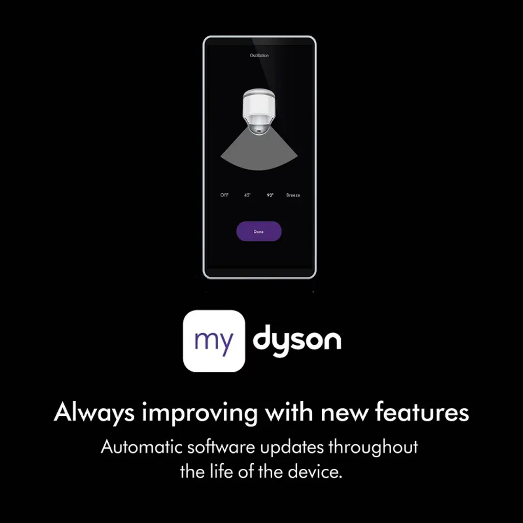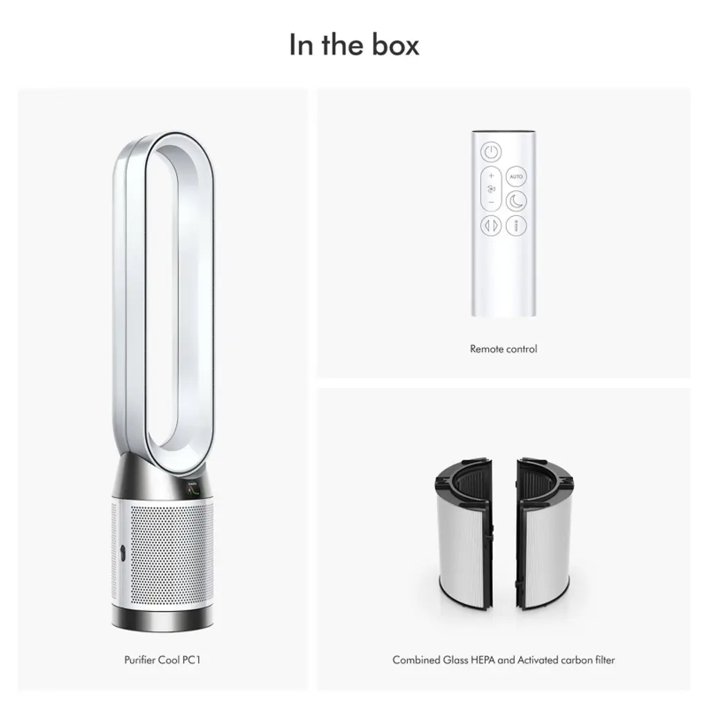Dyson Purifier Cool PC1 delivers whole-room purification⁴ and powerful cooling.⁶ The fully sealed filter system captures 99.97% of microscopic allergens² and pollutants as small as 0.3 microns.¹ The whole purifier, not just the filtration system, is fully sealed to HEPA H13 grade.³ Air Multiplier™ technology projects over 76 gallons per second of smooth, yet powerful airflow.⁷ Connects to the MyDyson™ app to control and monitor air quality from anywhere, or hands-free with compatible voice services.⁵