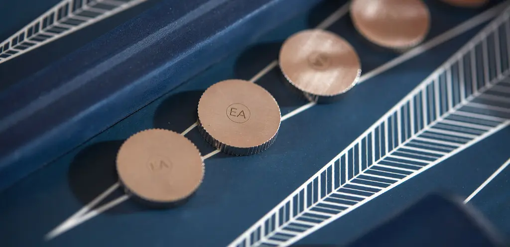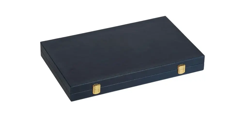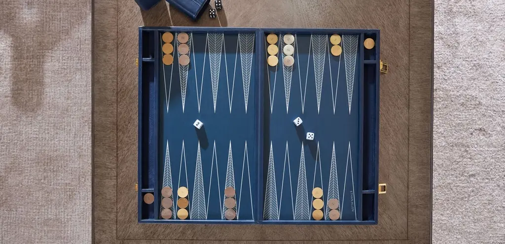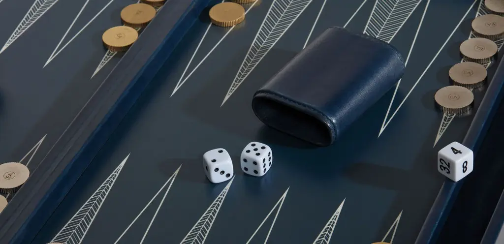 Play a backgammon tournament on family game night, or leave the board open and make a move every time you walk by. Inside our exclusive EA Guild leather case, you'll find 30 brushed brass and brushed nickel checkers, plus two die holders, two pairs of dice, and a doubling cube.