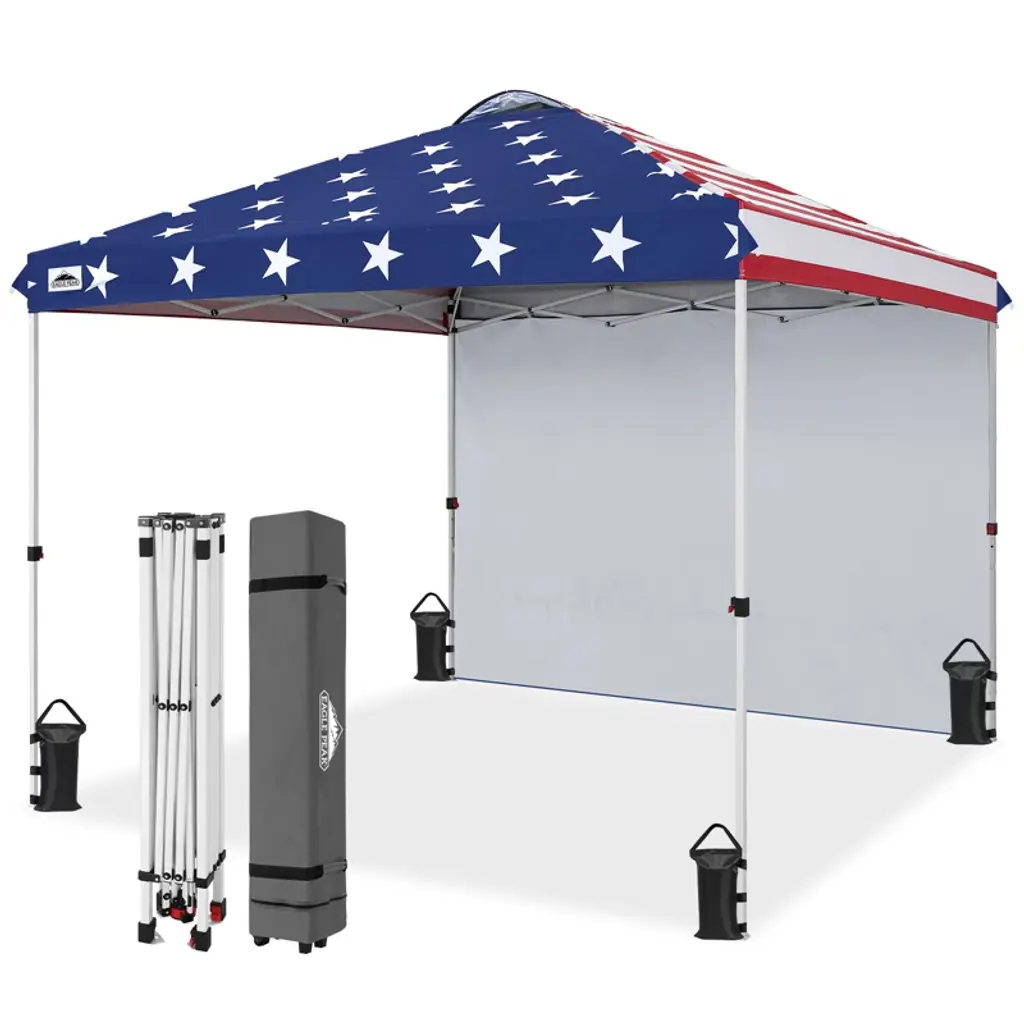 Eagle Peak 10x10 Ft Pop Up Canopy With One Sidewall, Easy Setup Instant Tent, American Flag