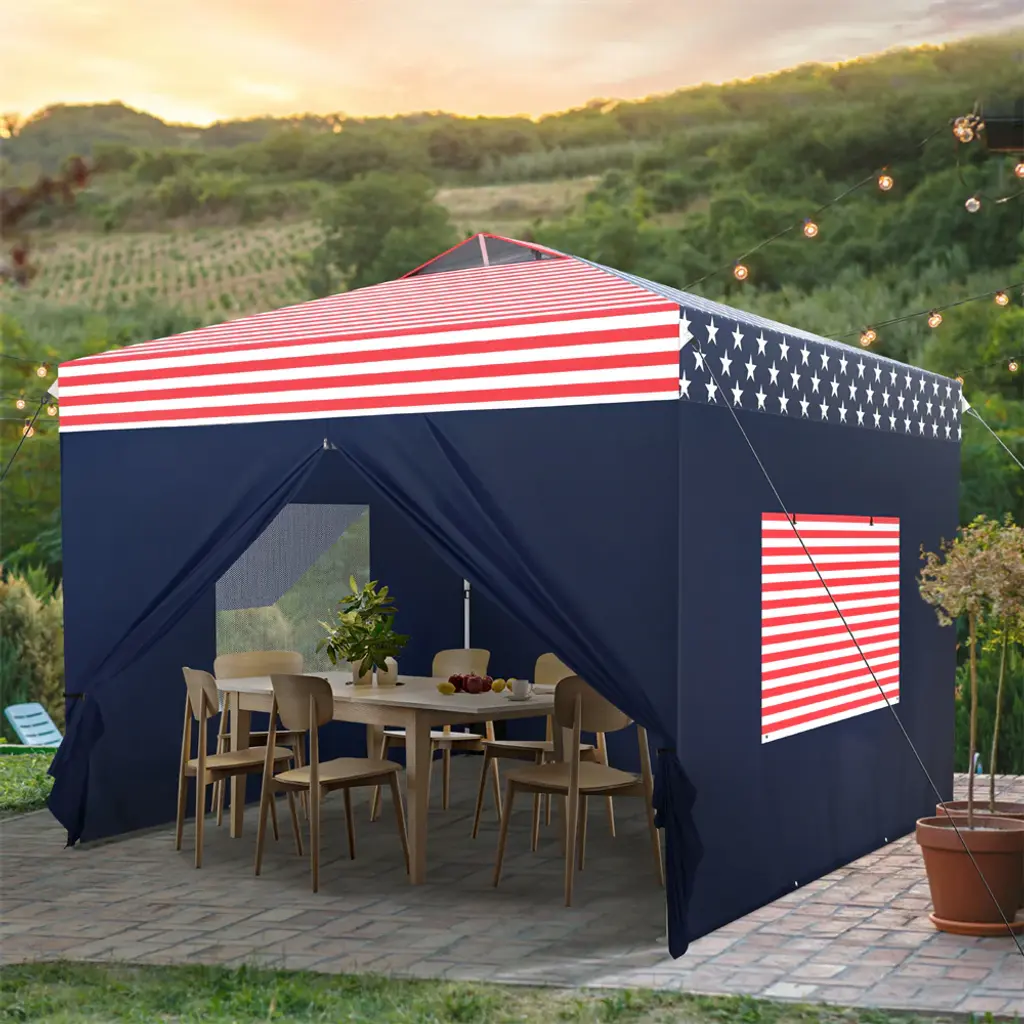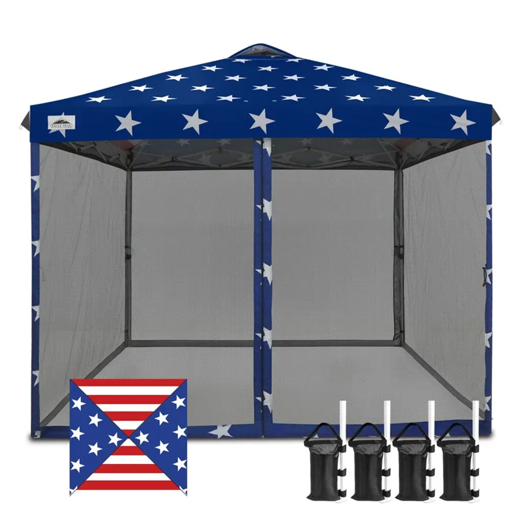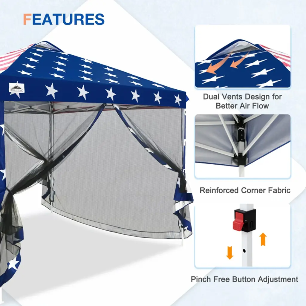 Eagle Peak 10x10 Outdoor Easy Pop Up Canopy With Netting, American Flag
