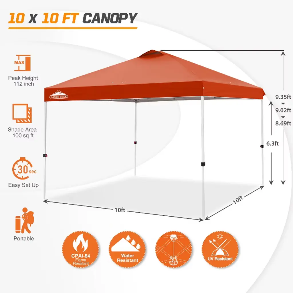 Eagle Peak 10x10 Pop Up Canopy Instant Tent W/ 4 Weight Bags, Brick Red