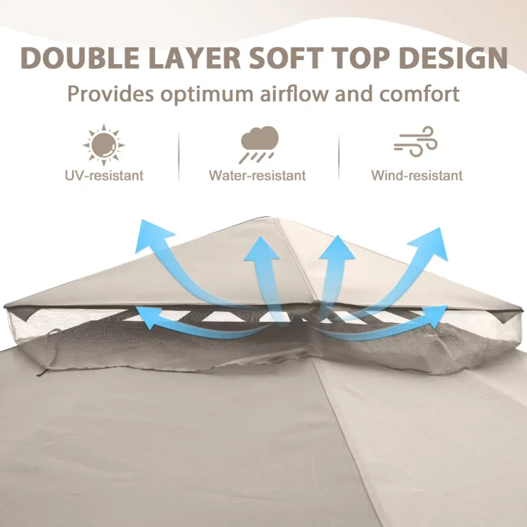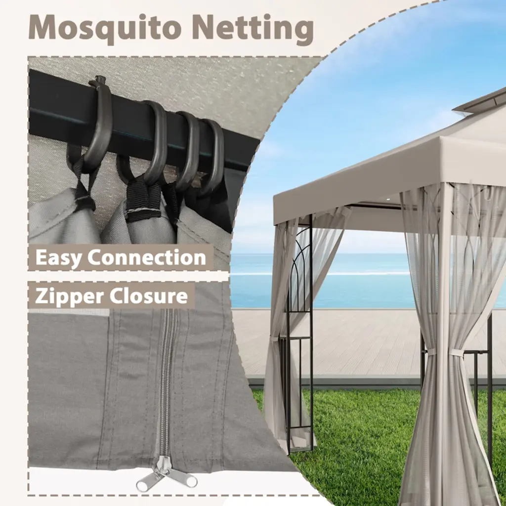 Eagle Peak 10'x10'double Roof Outdoor Patio Gazebo With Mesh Netting, Beige