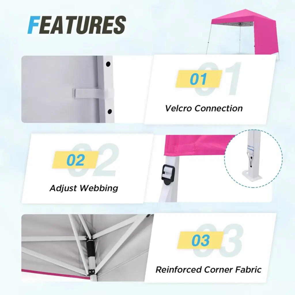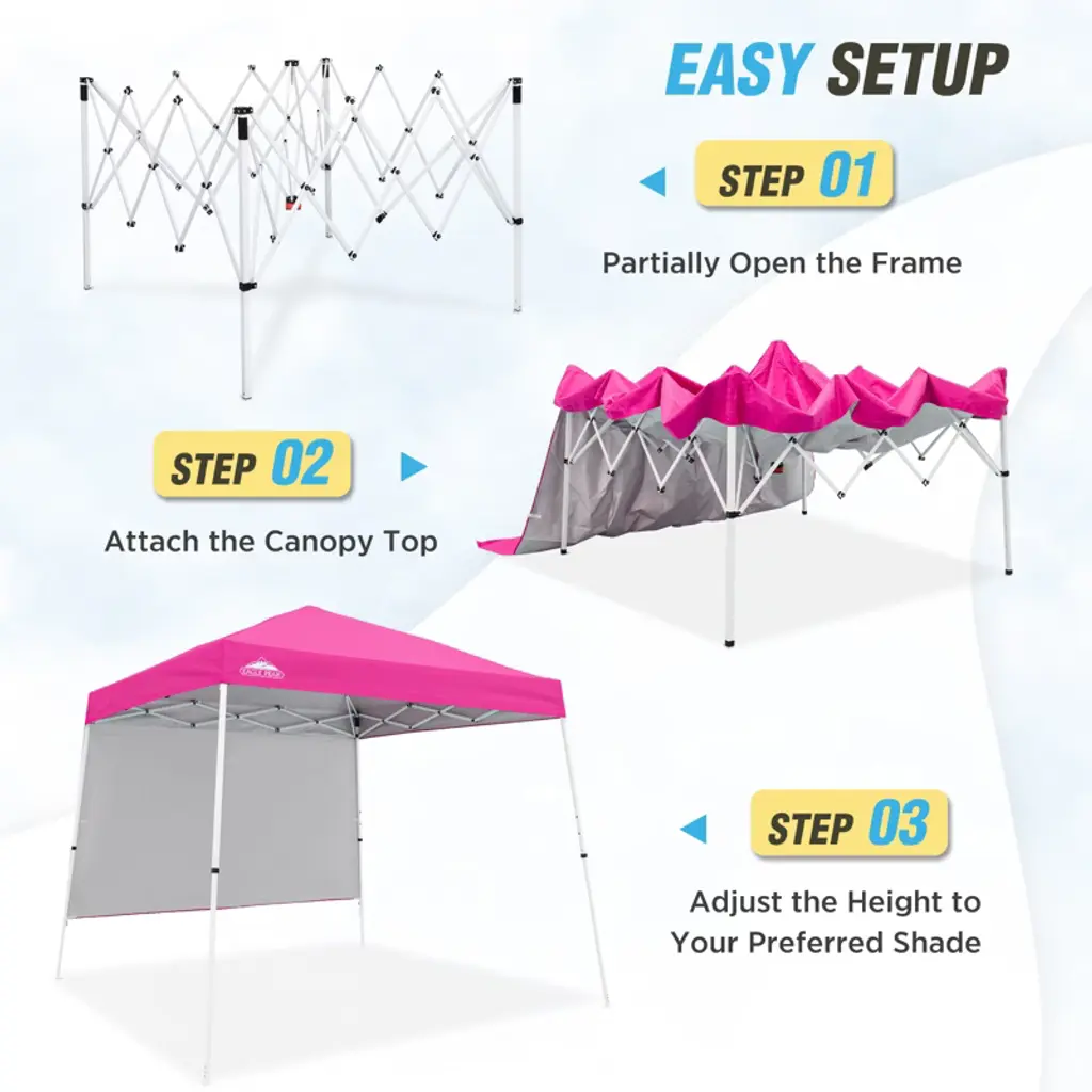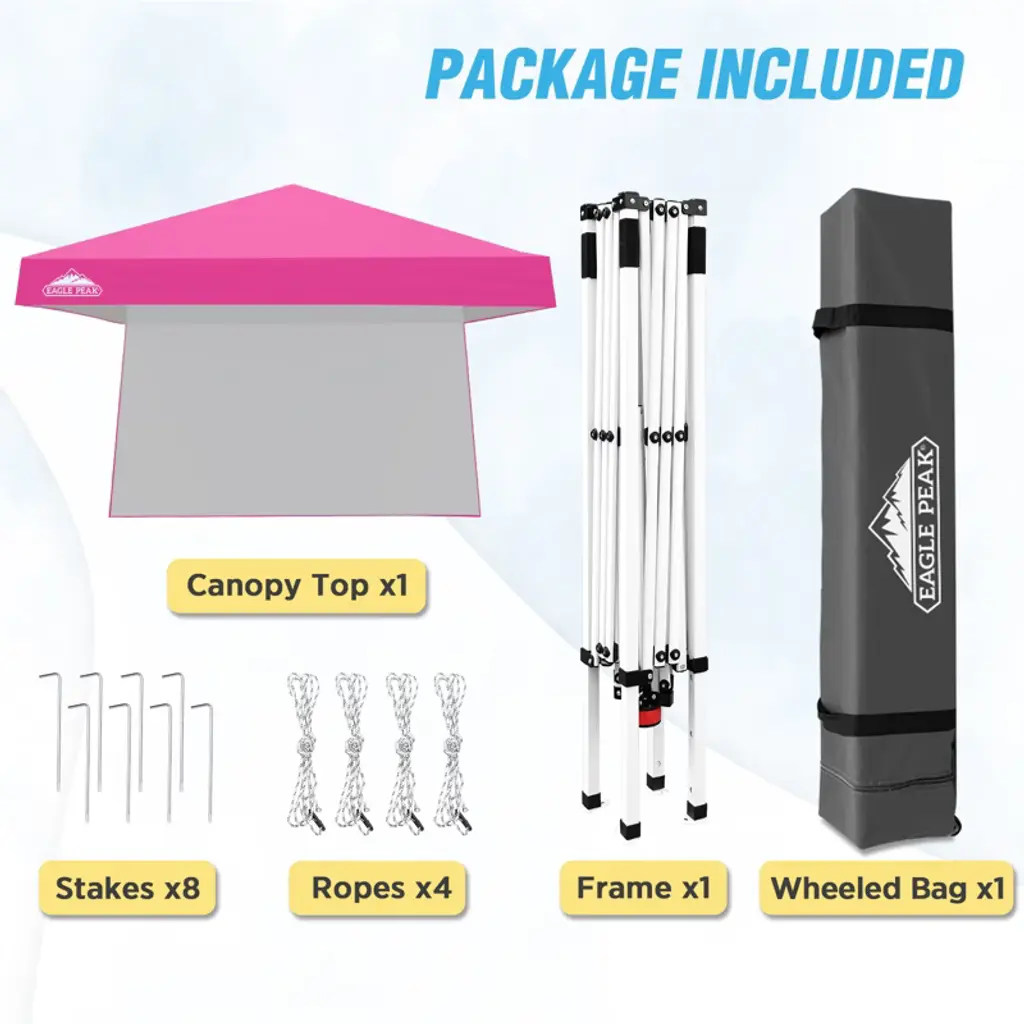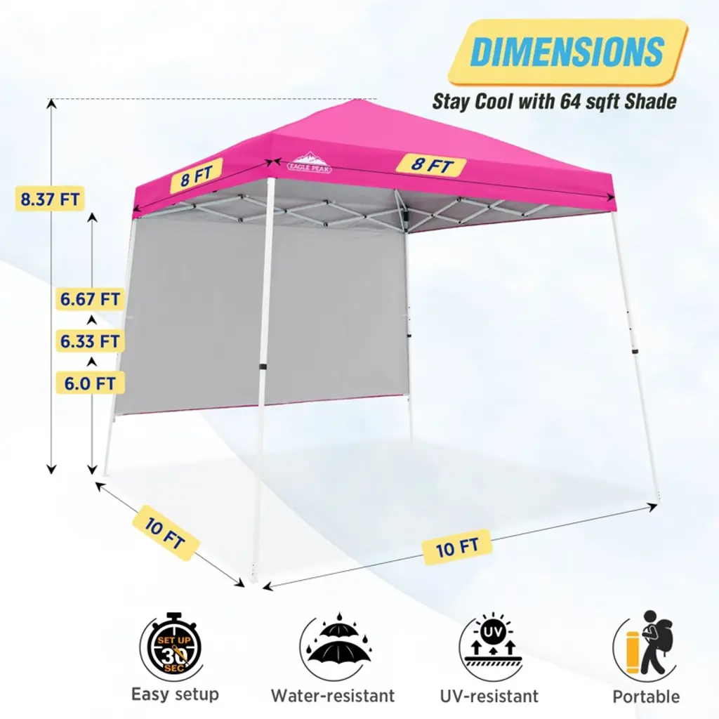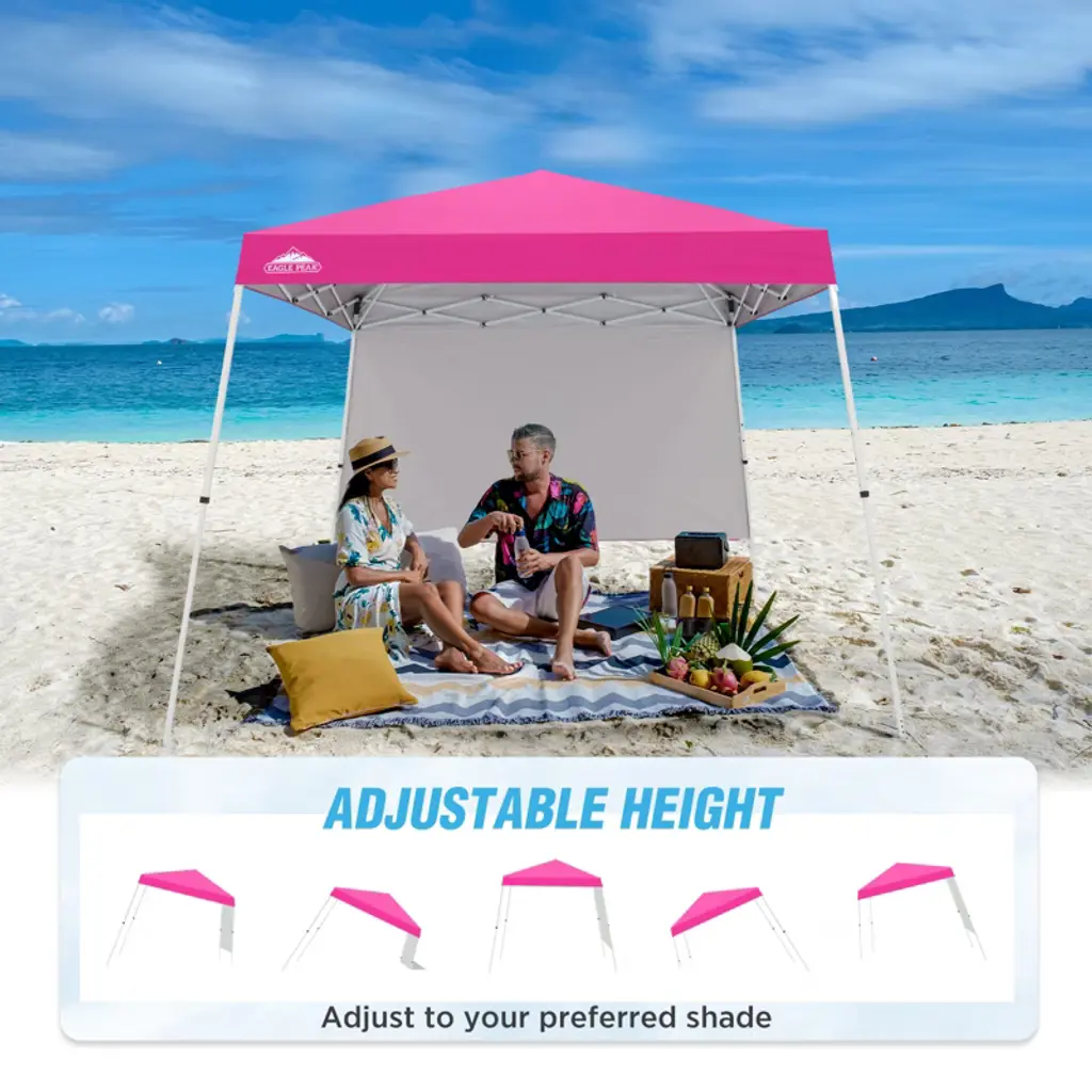 Eagle Peak 10x10ft Pop Up Canopy Slant Leg Tent With Sidewall, 10x10 Base 8X8 Top, Pink