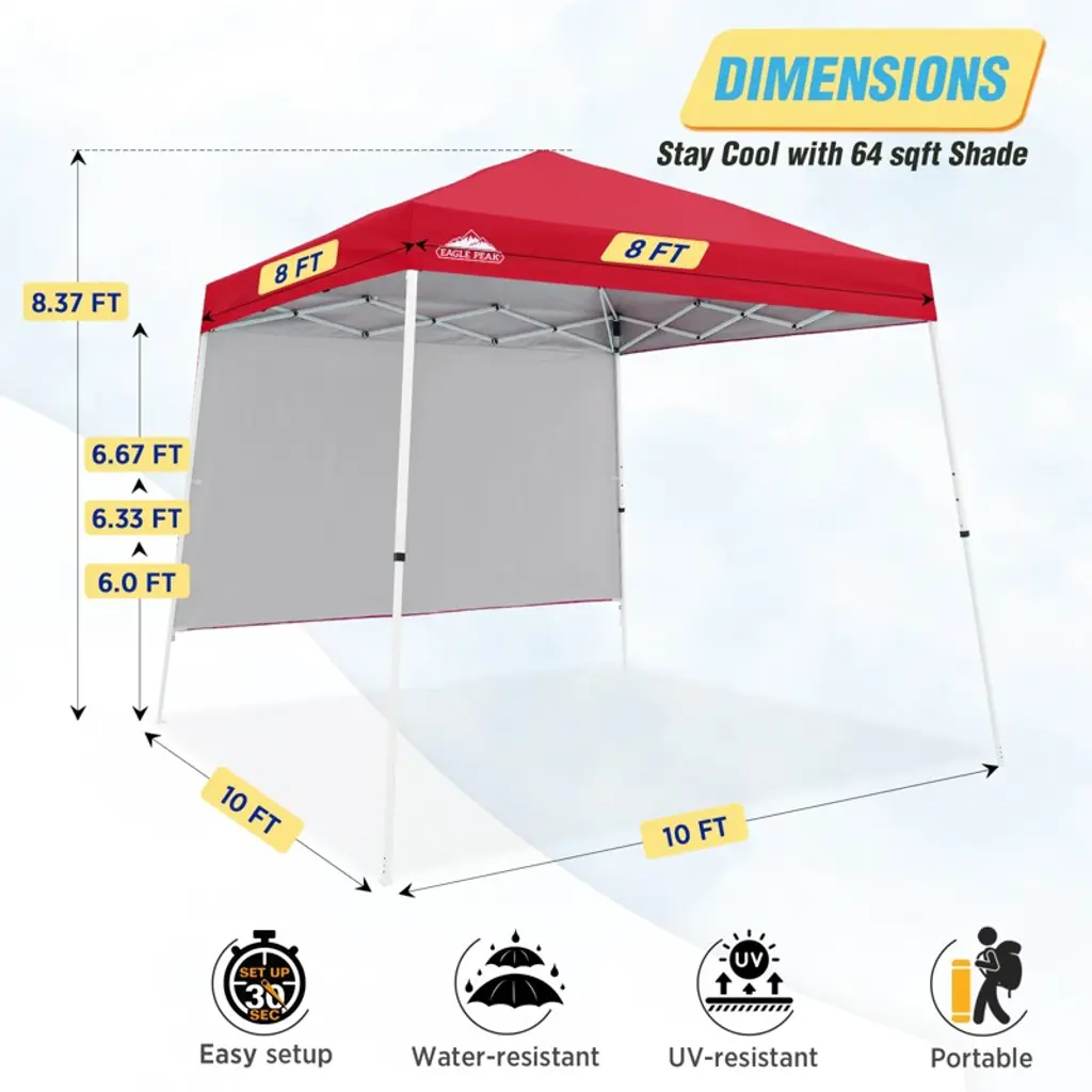 Eagle Peak 10x10ft Pop Up Canopy Slant Leg Tent With Sidewall, 10x10 Base 8X8 Top, Red