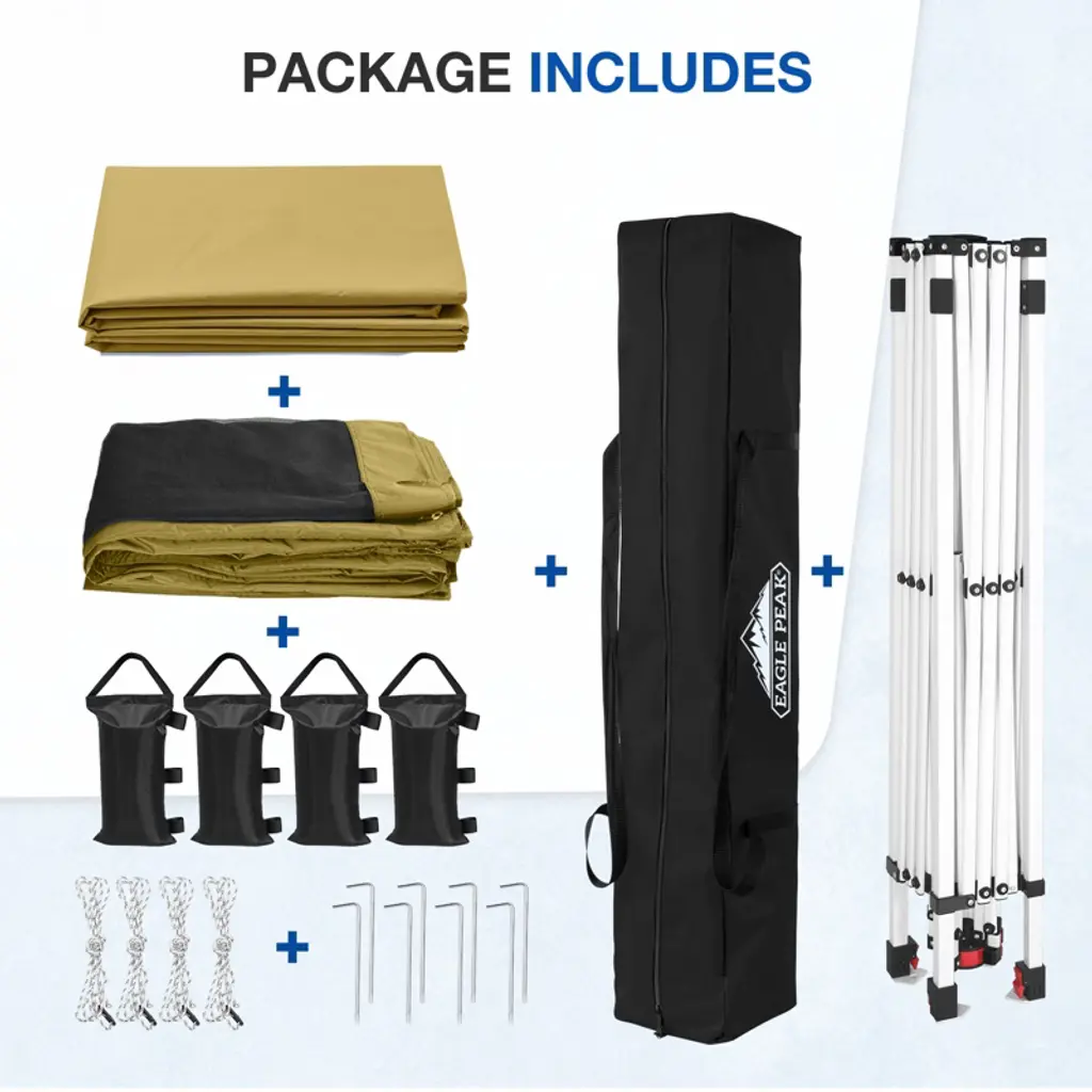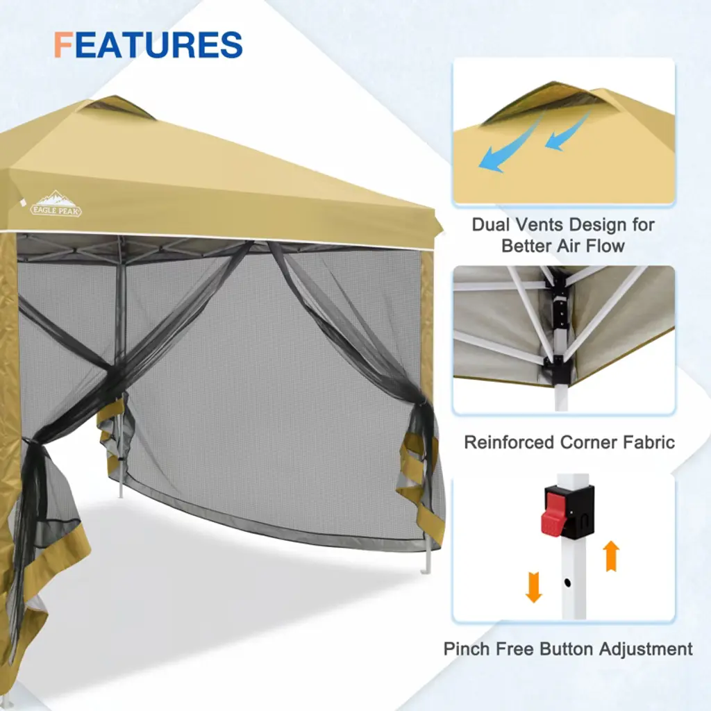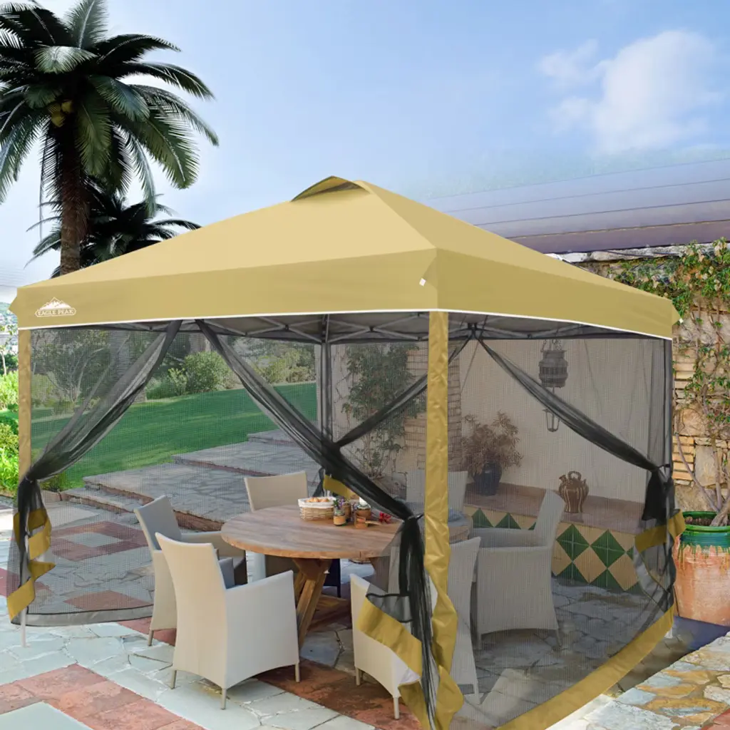 Eagle Peak 10x10ft Pop Up Gazebo Patio Canopy Tent Shelter With Netting, Beige
