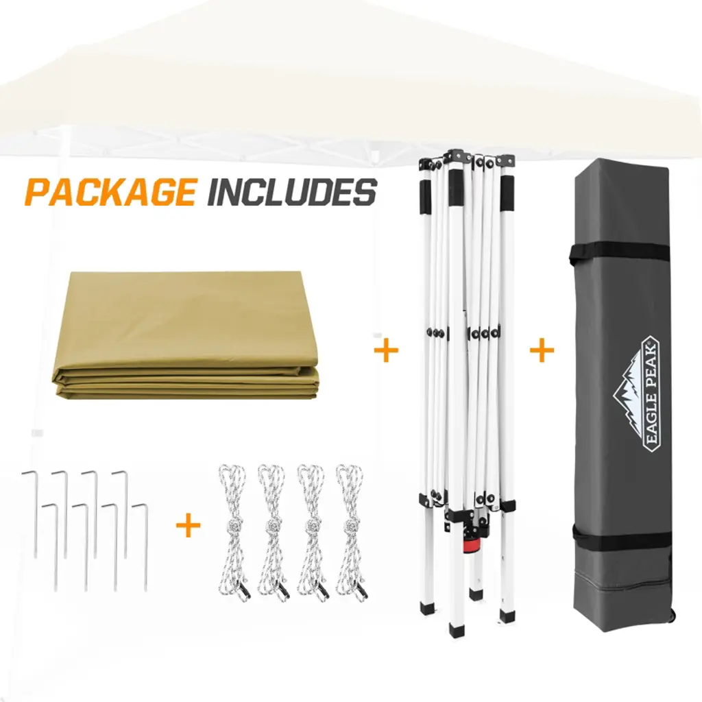 Eagle Peak 10x10ft Slant Leg Pop Up Canopy Tent Easy One Person Setup Instant Canopy 10x10 Base 8X8 Top (Beige)