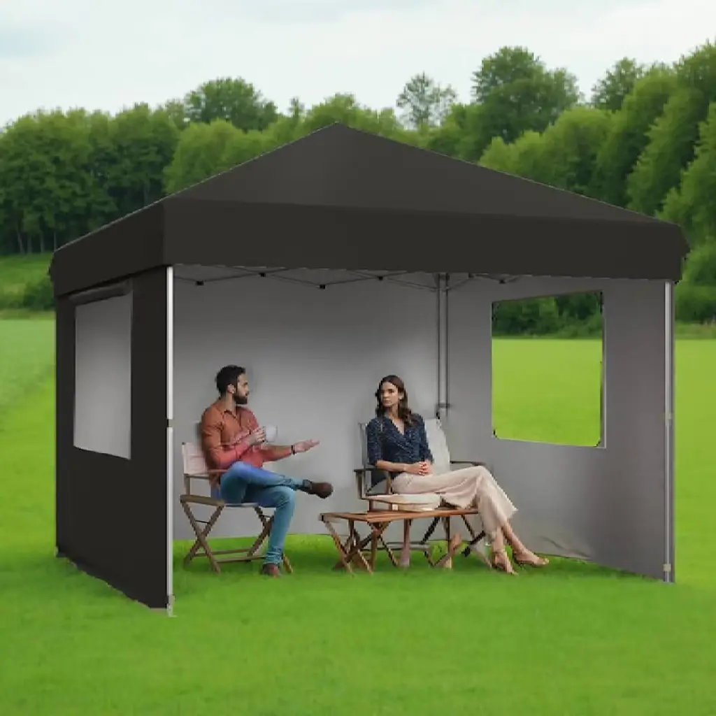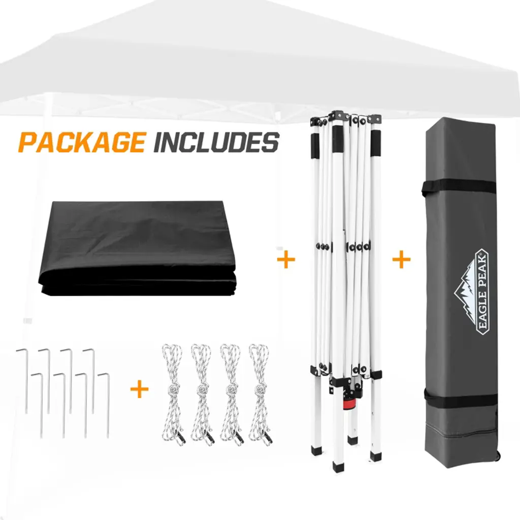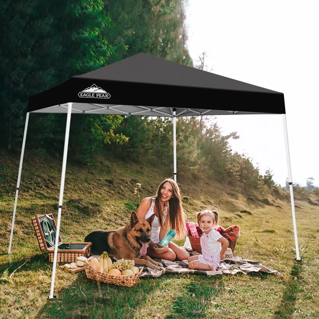 Eagle Peak 10x10ft Slant Leg Pop Up Canopy Tent Easy One Person Setup Instant Canopy 10x10 Base 8X8 Top (Black)