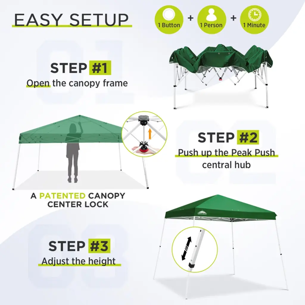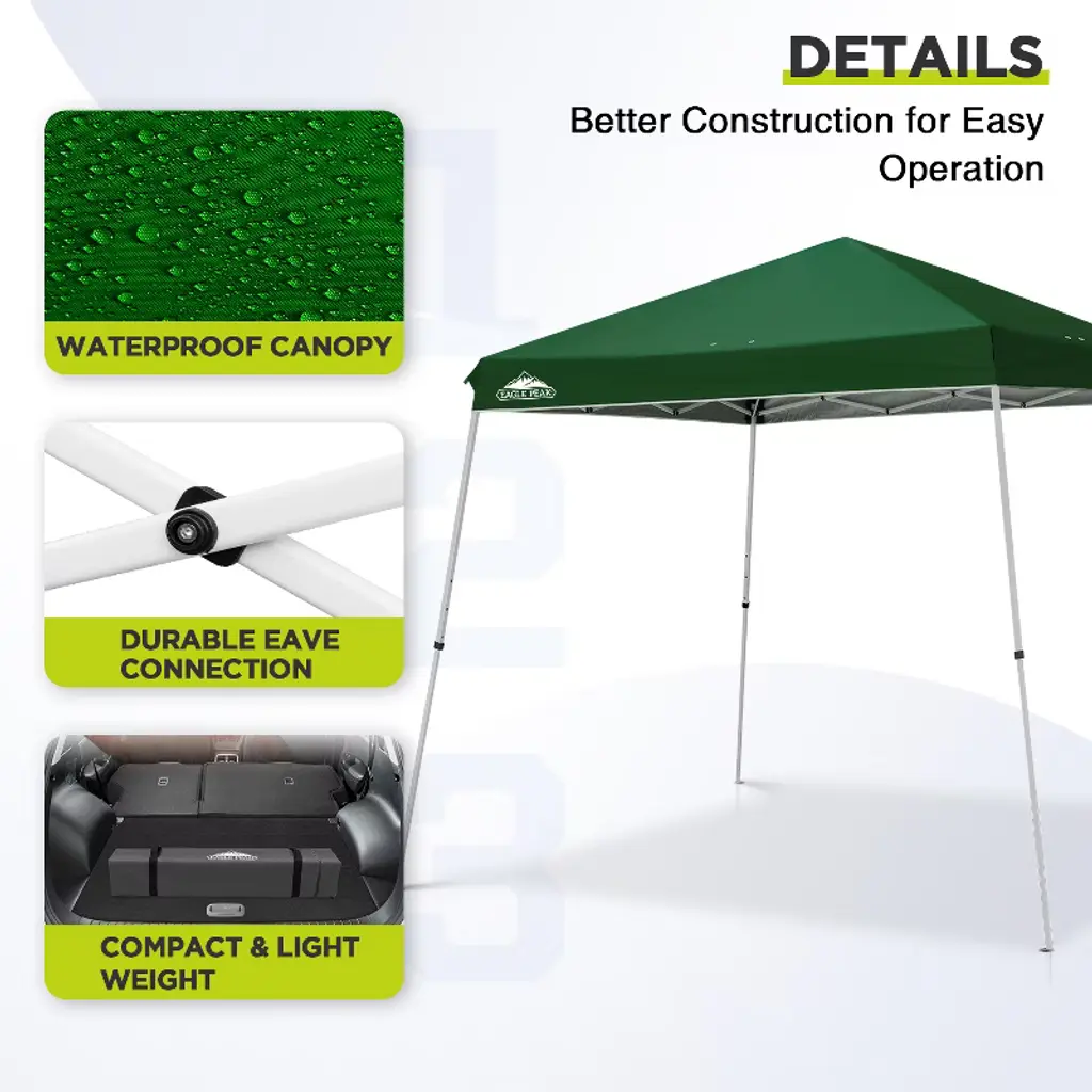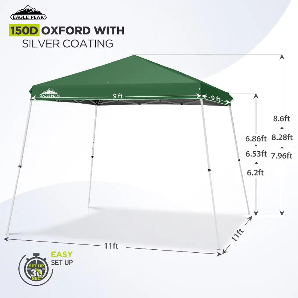 Eagle Peak 11x11ft Pop Up Canopy Tent Slant Leg Instant Outdoor Canopy 11x11 Base 9X9 Top (Green)