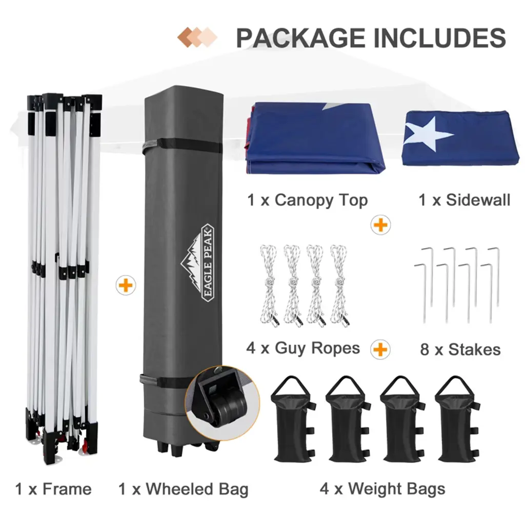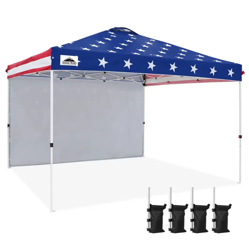 Eagle Peak 12x12ft Pop Up Canopy With One Sidewall, Easy Setup Event Instant Tent, American Flag