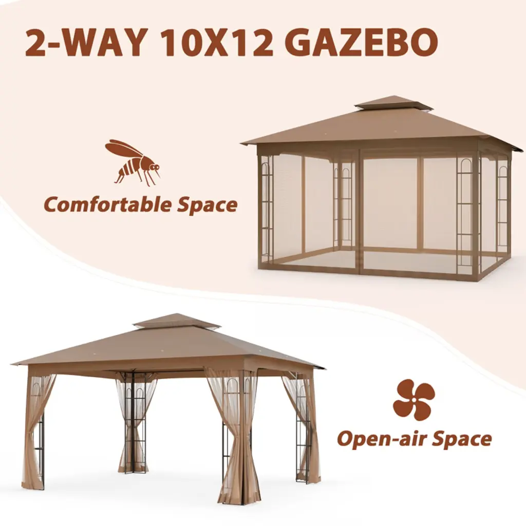 Eagle Peak 13'x11'double Roof Outdoor Patio Gazebo With Mesh Netting, Brown