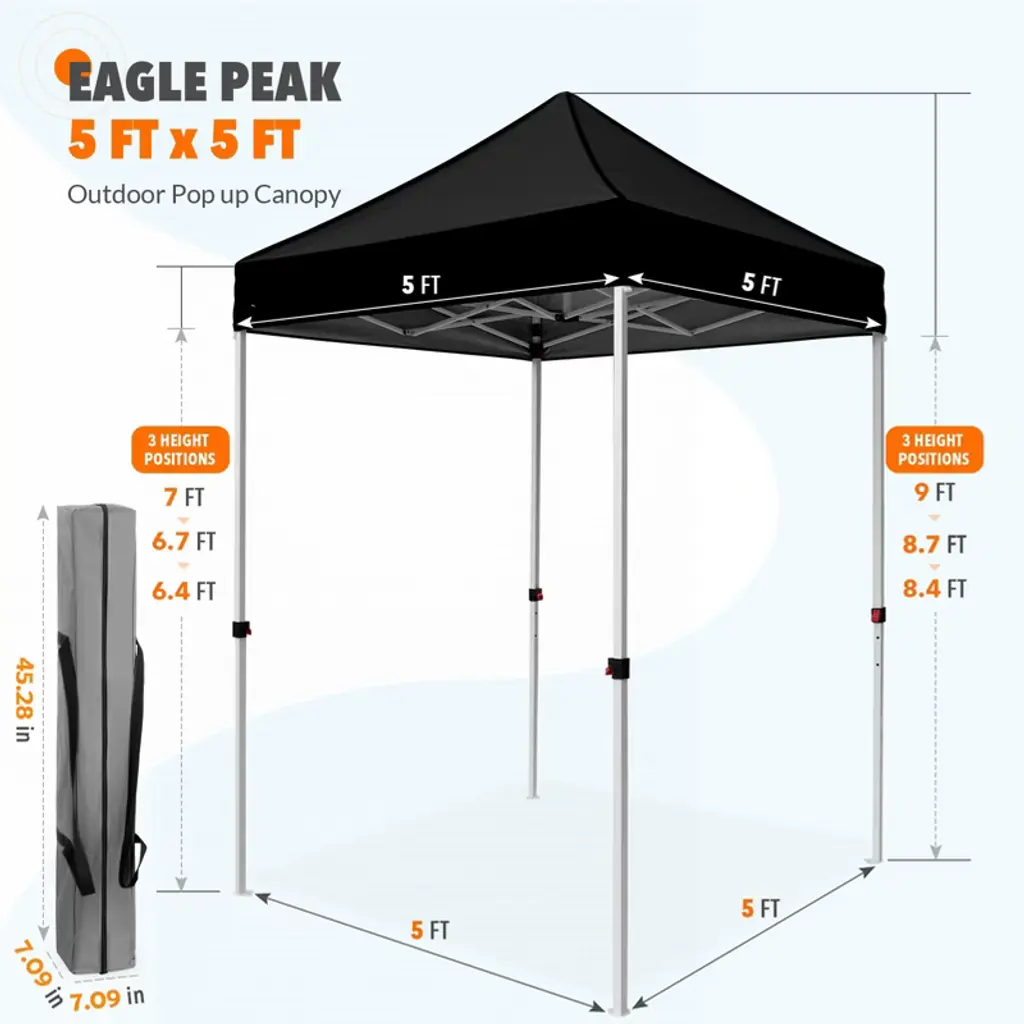 Eagle Peak 5X5ft Easy Setup Pop Up Canopy Folding Tent Sun Shelter Uv50+, Black