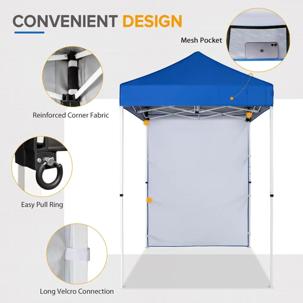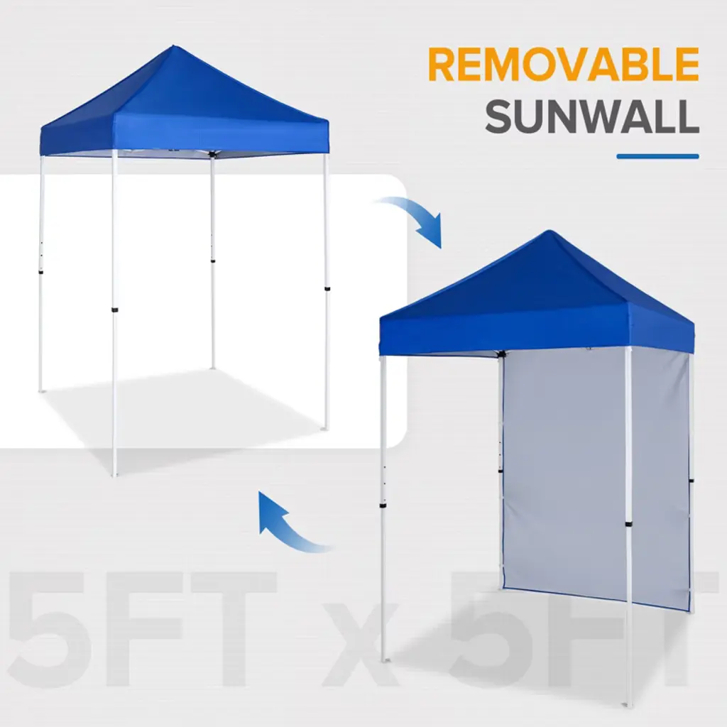 Eagle Peak 5X5ft Easy Setup Pop Up Canopy Tent With One Wall, Blue