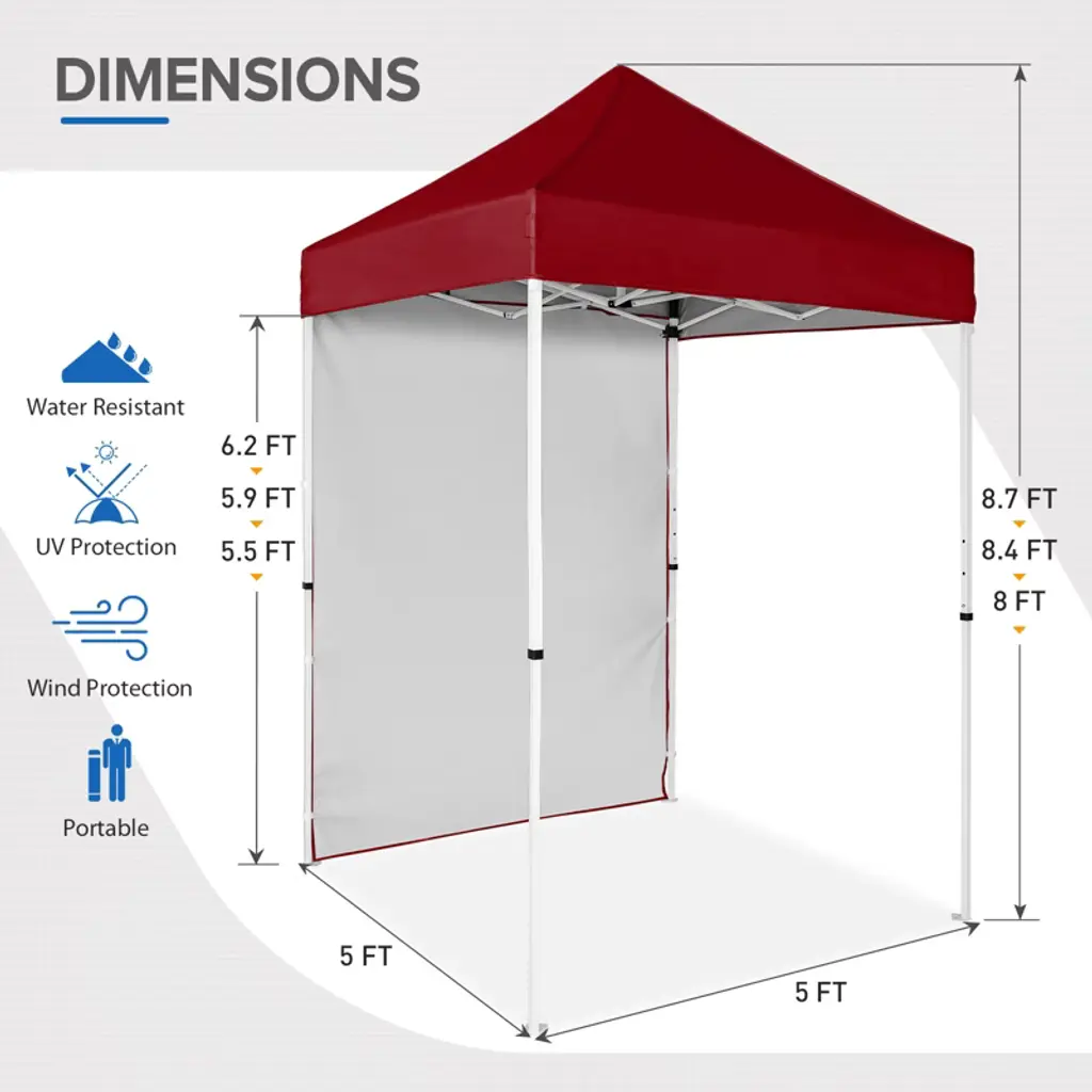 Eagle Peak 5X5ft Easy Setup Pop Up Canopy Tent With One Wall, Burgundy