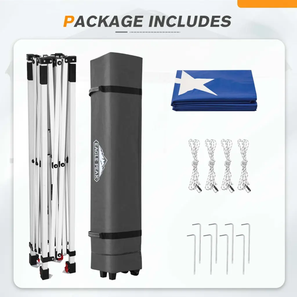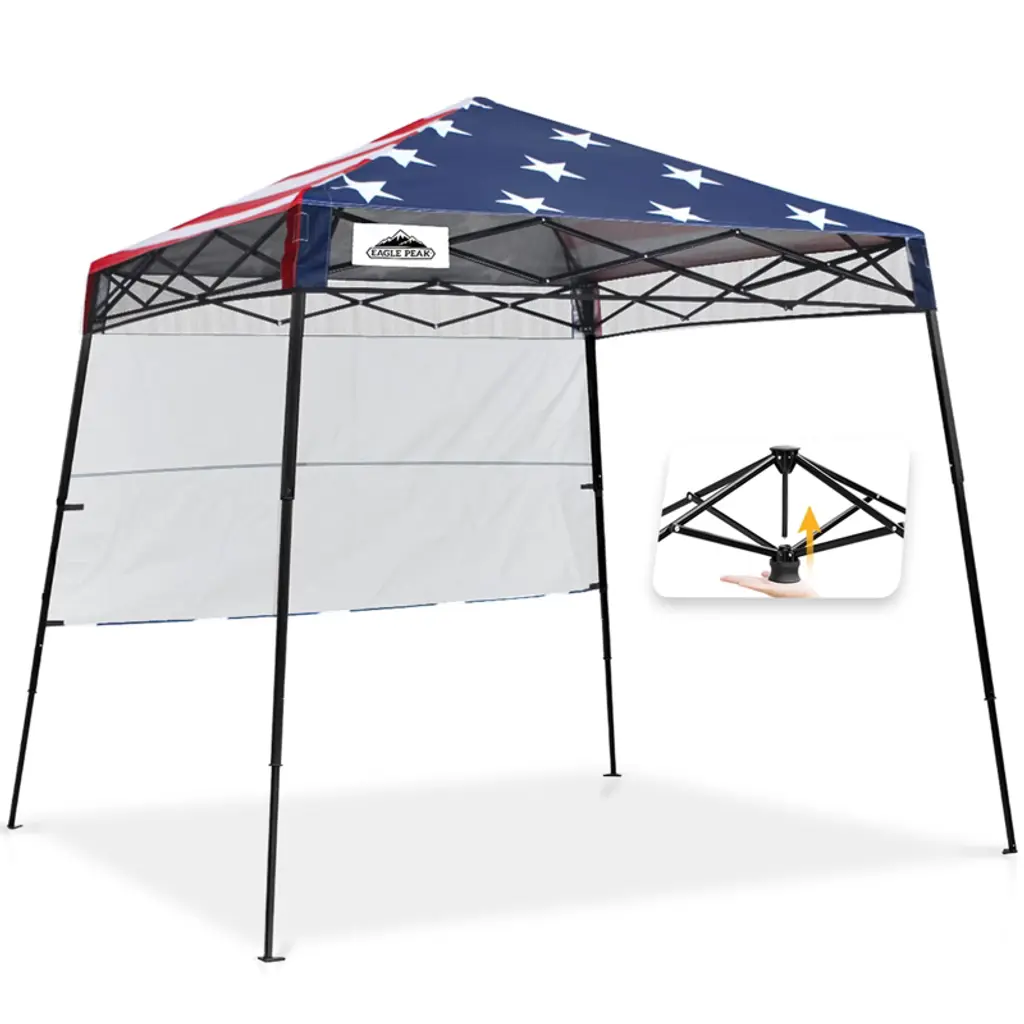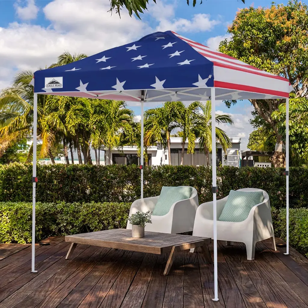 Eagle Peak 6.6x6.6 Pop Up Canopy Tent Instant Outdoor Canopy Easy Set Up Straight Leg, 8 Stakes And 4 Ropes, American Flag