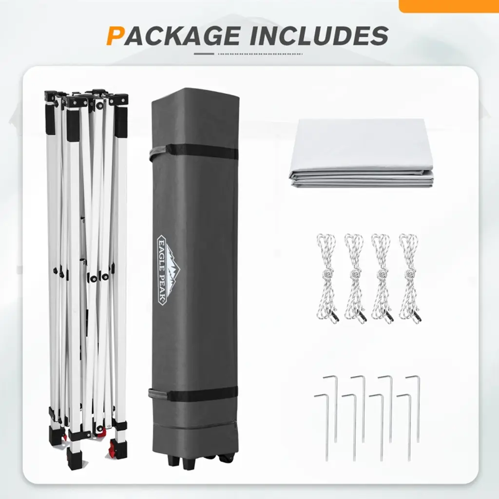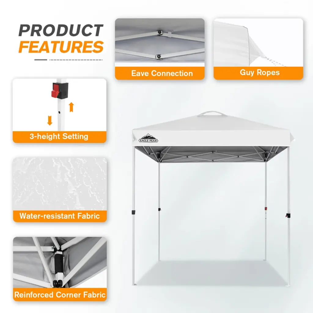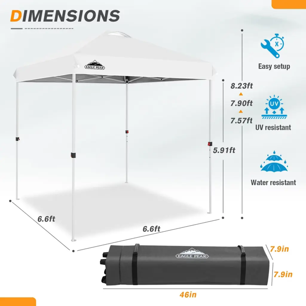 Eagle Peak 6.6x6.6 Pop Up Canopy Tent Instant Outdoor Canopy Easy Set Up Straight Leg Folding Shelter With Wheeled Bag, 8 Stakes And 4 Ropes, White