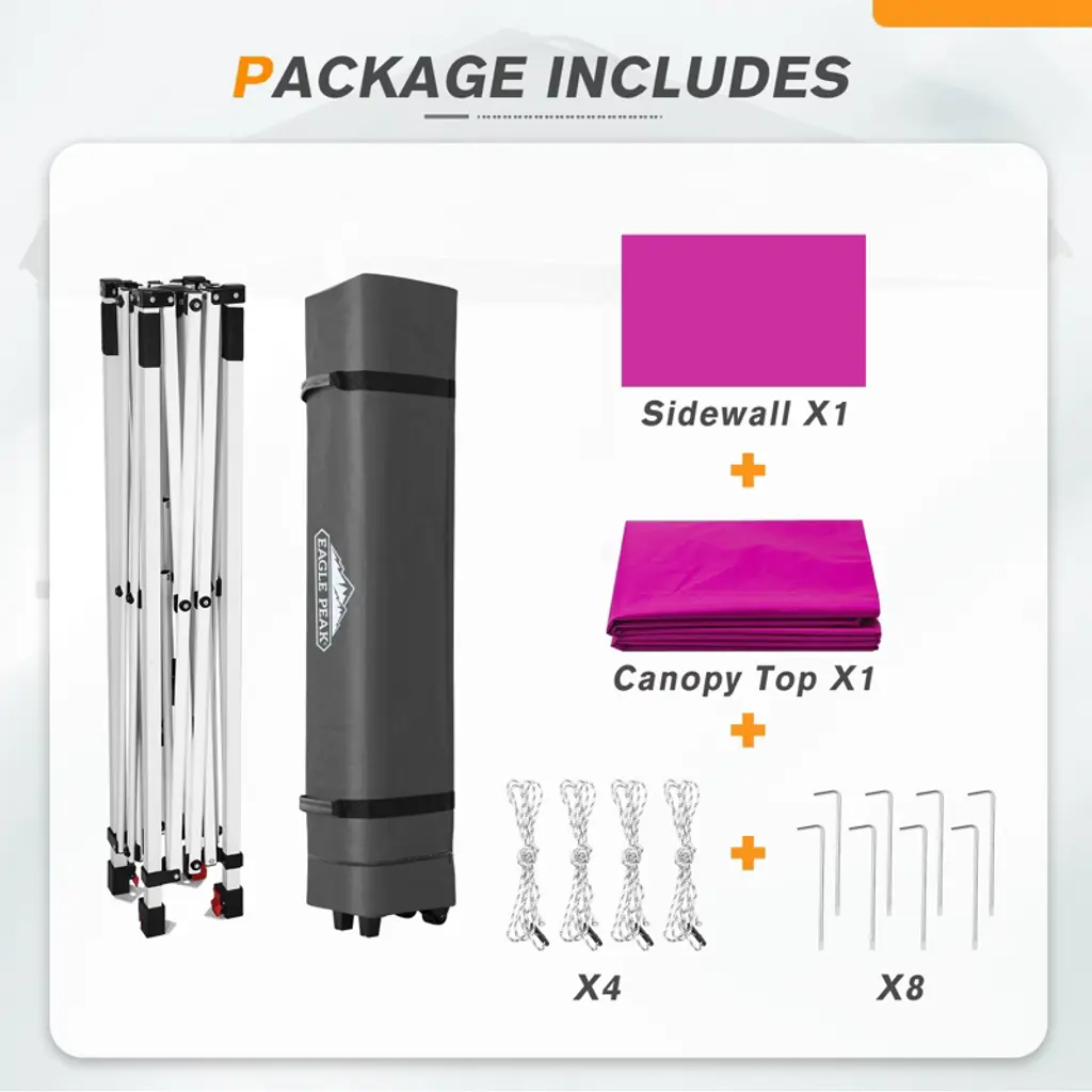 Eagle Peak 6.6x6.6 Pop Up Canopy Tent With One Sidewall, 8 Stakes And 4 Ropes, Pink