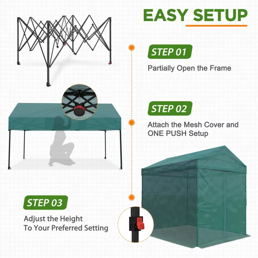 The EAGLE PEAK 8x6 Walk-in Greenhouse provides an ideal, protected environment for your plants with its spacious walk-in design and durable gable roof structure, featuring a high-quality mesh shade cloth cover that offers optimal sunlight diffusion and ventilation to prevent overheating while its instant pop-up assembly and portable frame make it effortlessly easy to relocate within your garden; complete with convenient roll-up doors for full access and excellent airflow control, this versatile greenhouse is the perfect instant solution for nurturing a wide variety of plants, seedlings, and vegetables throughout the growing season.