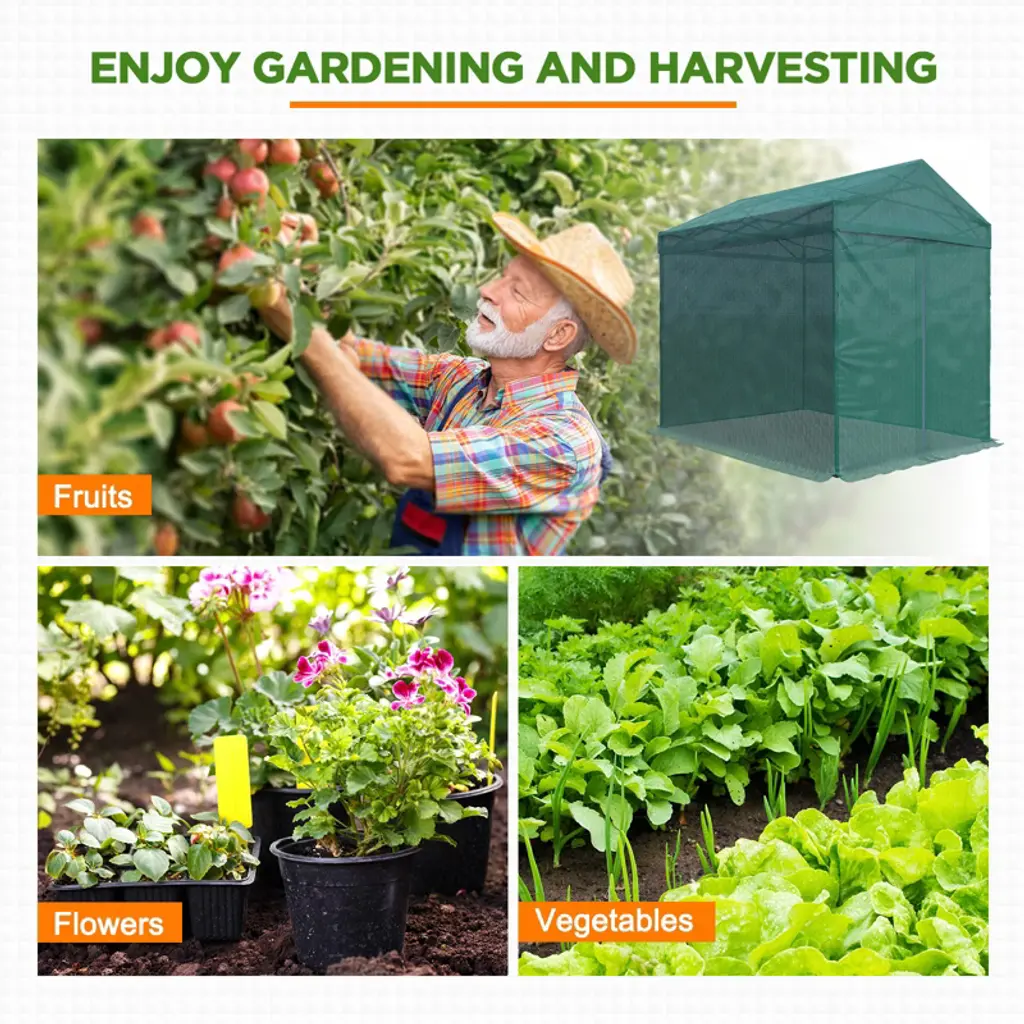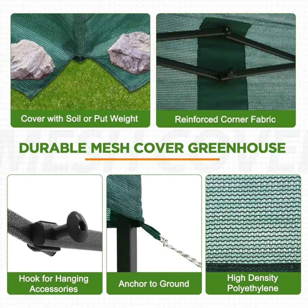 Eagle Peak 8X6 Walk In Shade Cloth Cover Greenhouse With Mesh Cover, Roll Up Doors, Green