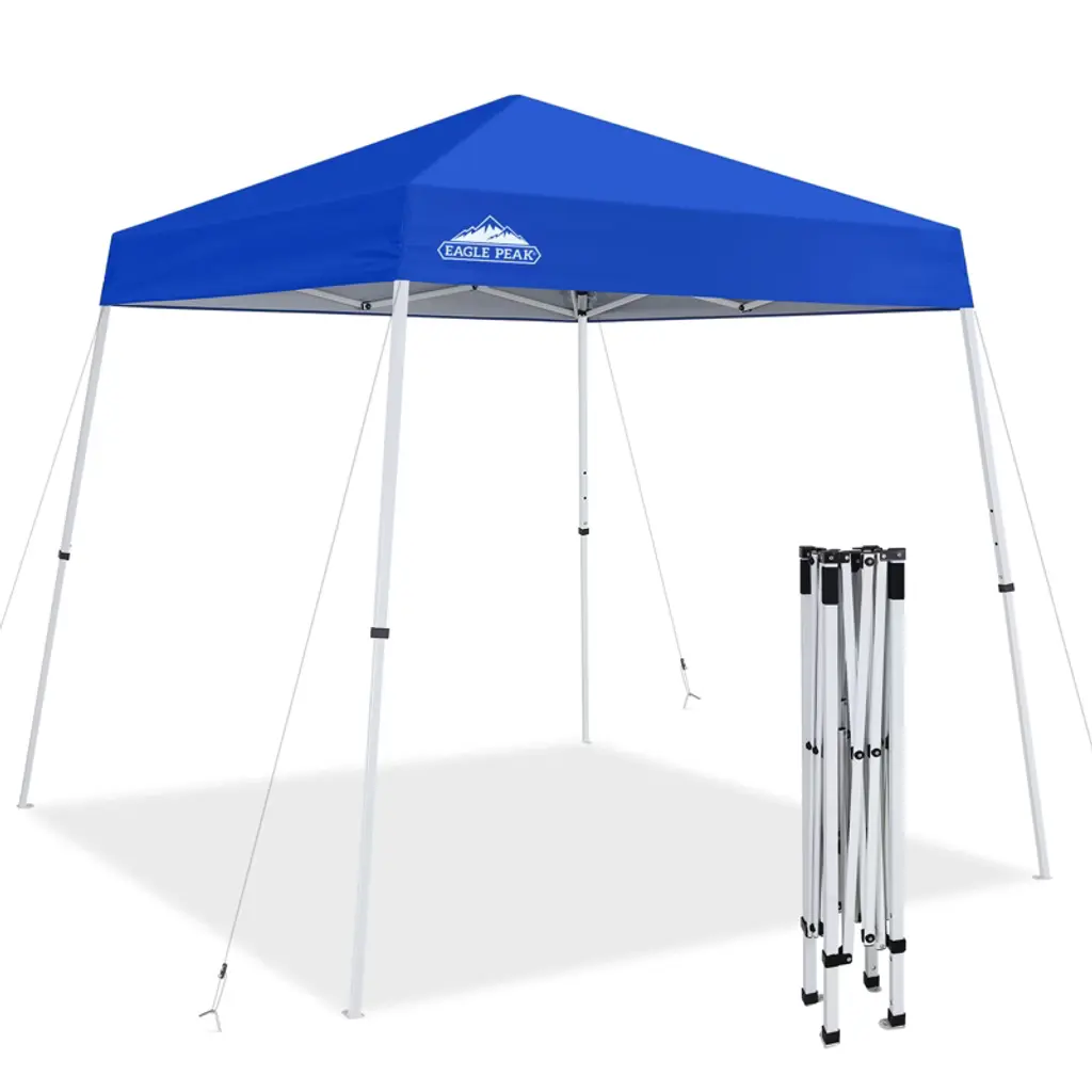 Eagle Peak 8X8 Slant Leg Pop Up Canopy Tent Easy Setup Instant Outdoor Beach Canopy 8X8 Base 6X6 Top (Green)