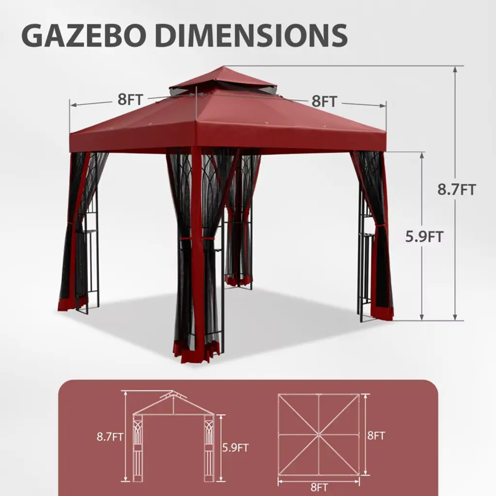 Eagle Peak 8'x8'double Roof Outdoor Patio Gazebo With Mesh Netting, Red
