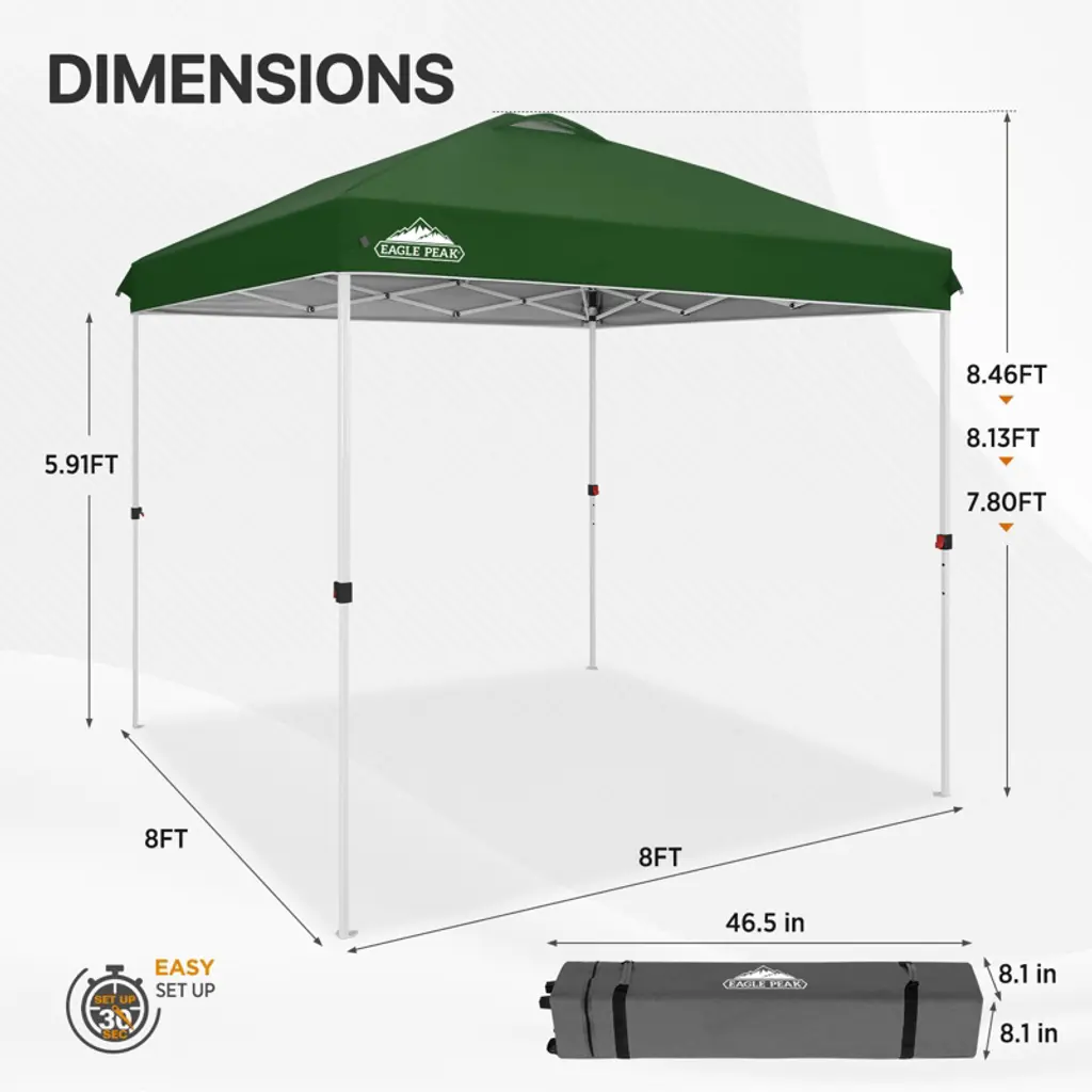 Eagle Peak 8X8ft Pop Up Canopy Tent Instant Outdoor Canopy With Wheeled Bag, Green