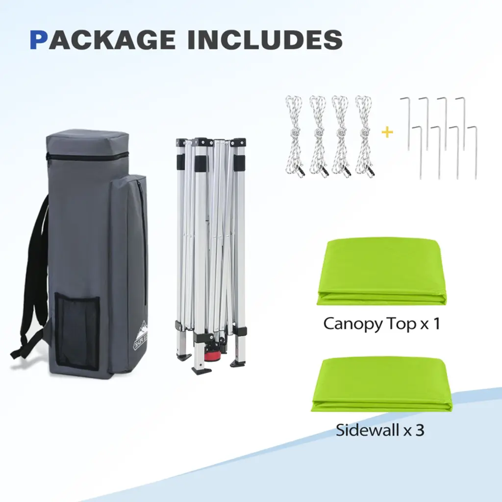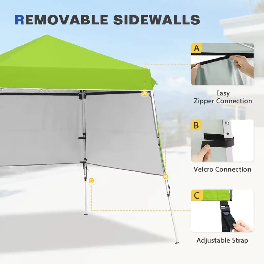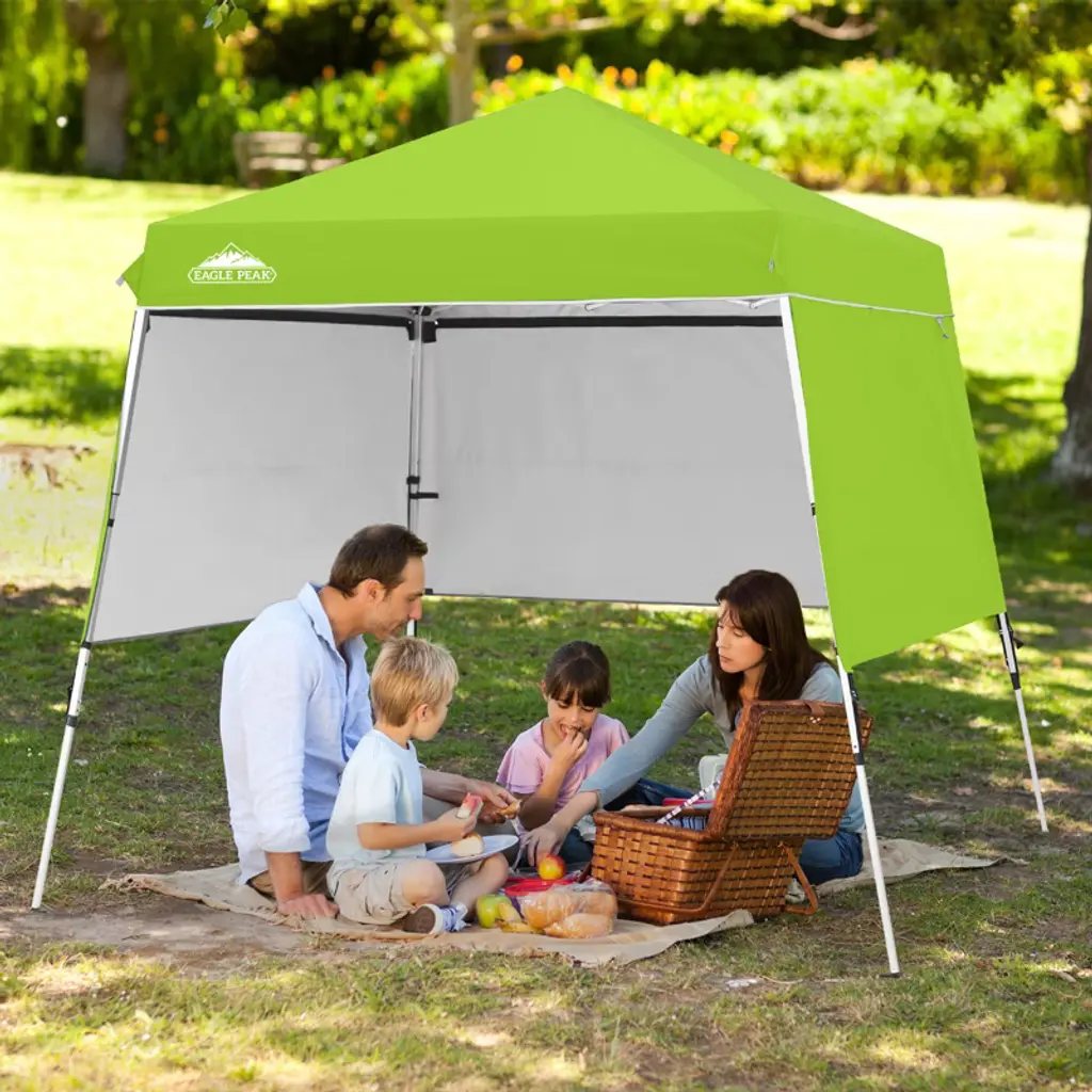 Eagle Peak 8X8ft Super-lightweight Aluminum Slant Leg Pop Up Canopy With 3 Walls, 8X8 Base 6X6 Top, Green