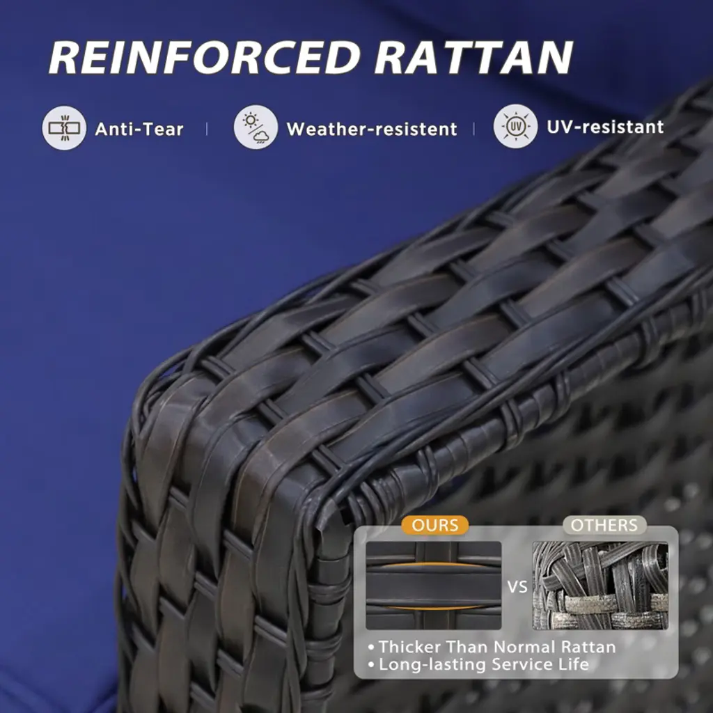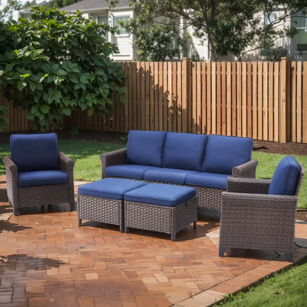 Eagle Peak Azure Bay 5 Pieces Wicker Outdoor Patio Furniture Set , Sofa And Chairs With Ottomans, Blue